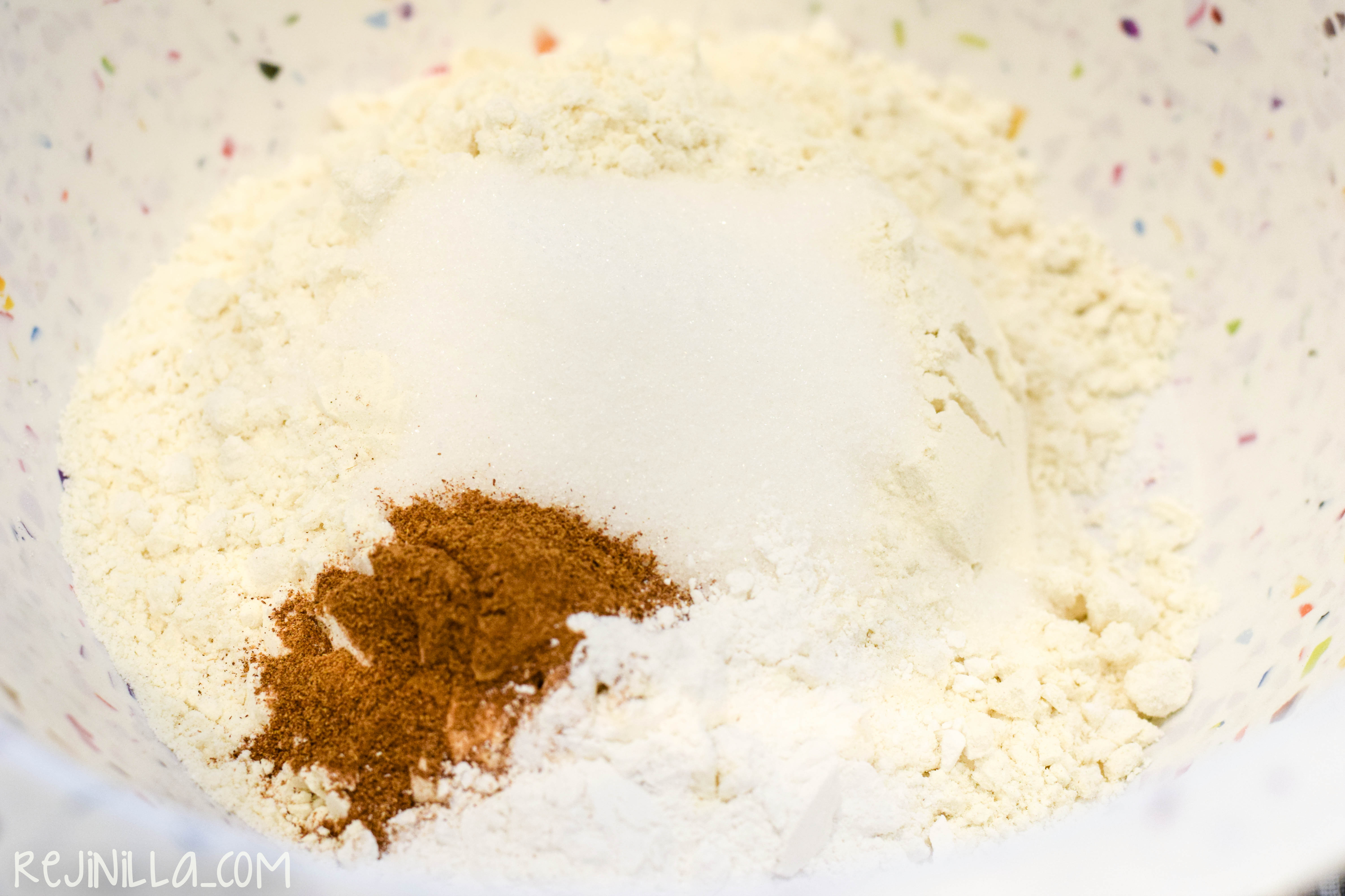Mezcla los ingredientes secos con los húmedos, las especias y la calabaza. Esta es enlatada, sólo necesitas una parte, congela la otra para hacer pan, un mini pan de calabaza de microondas o scones. O usa puré de calabaza hecho en casa…