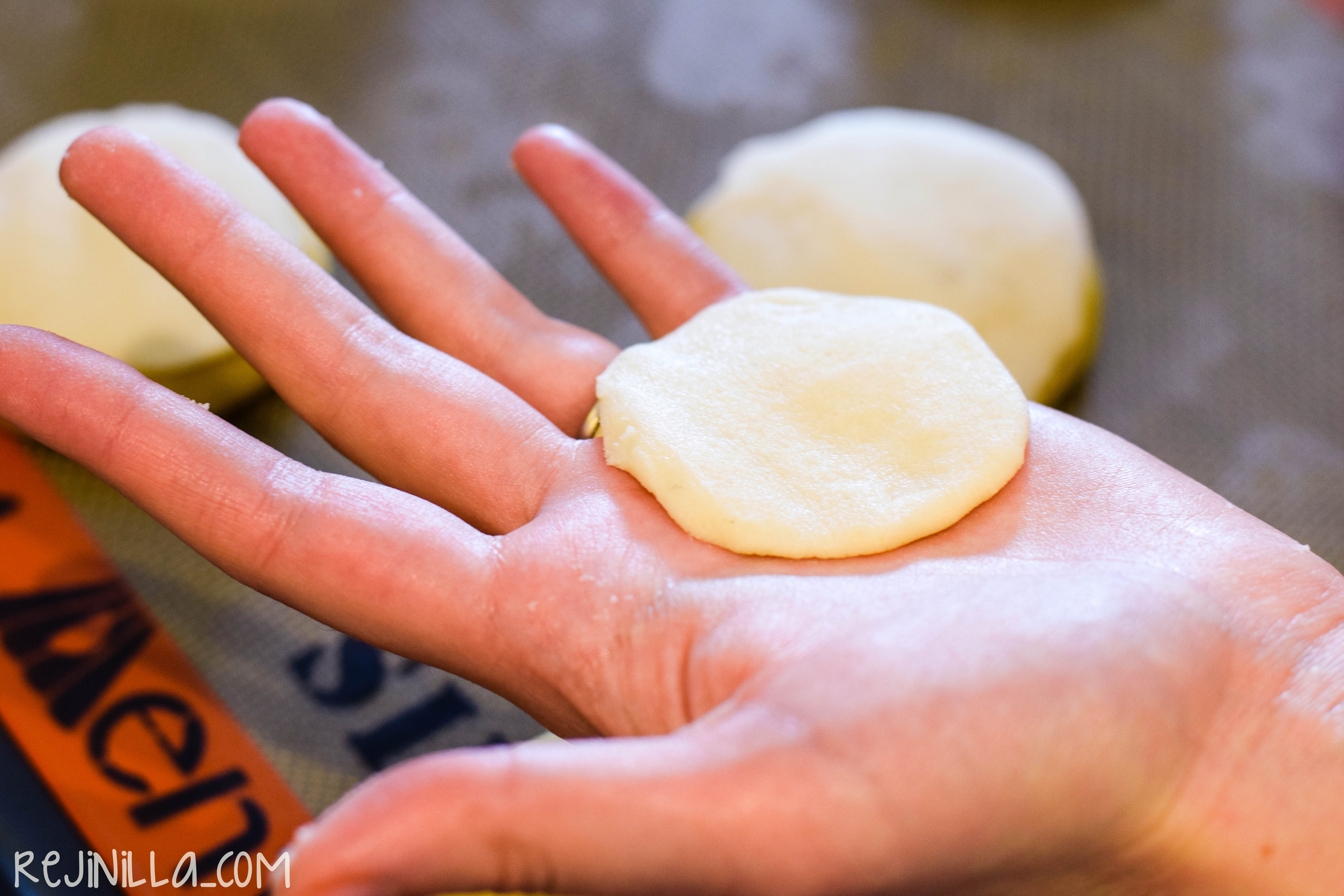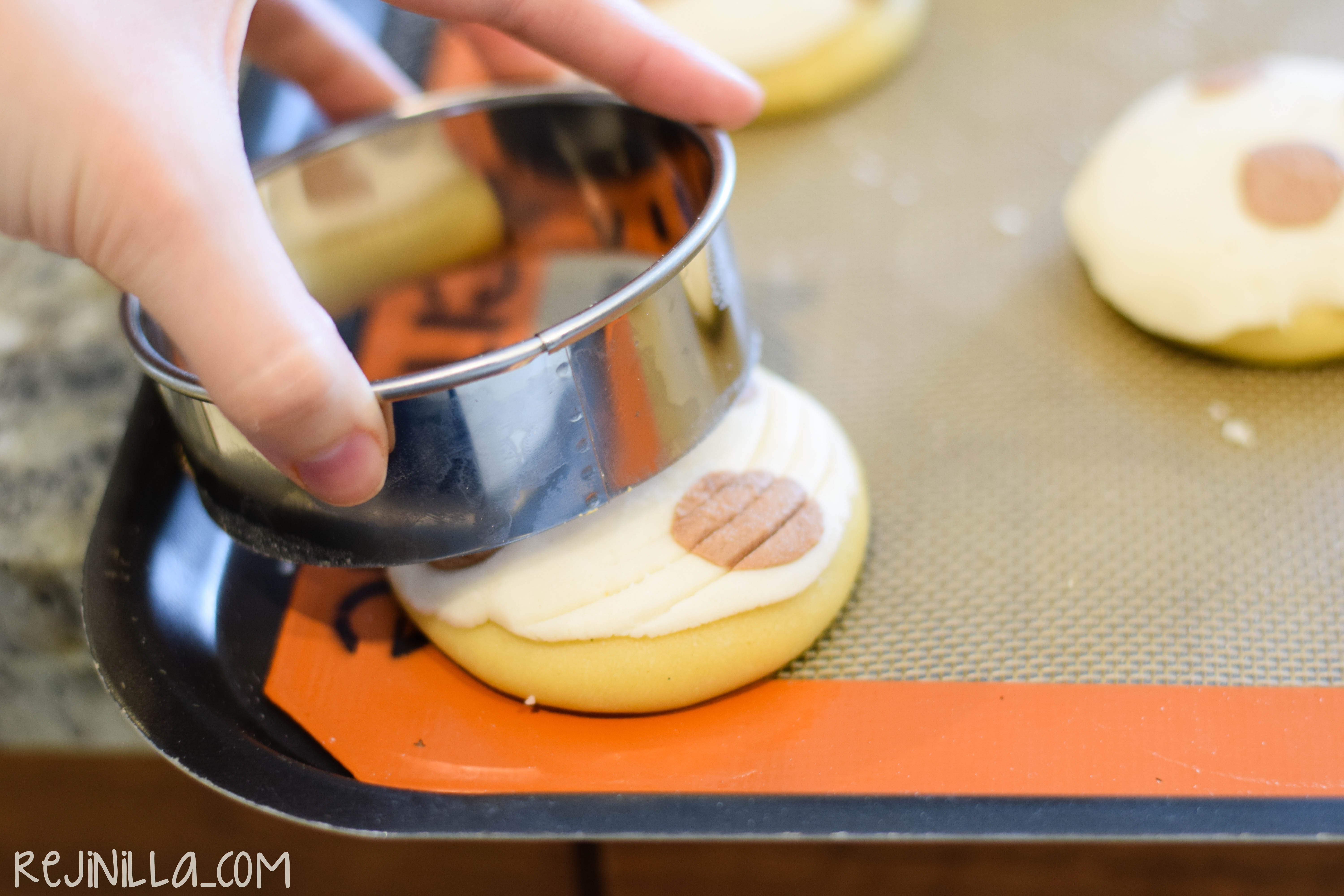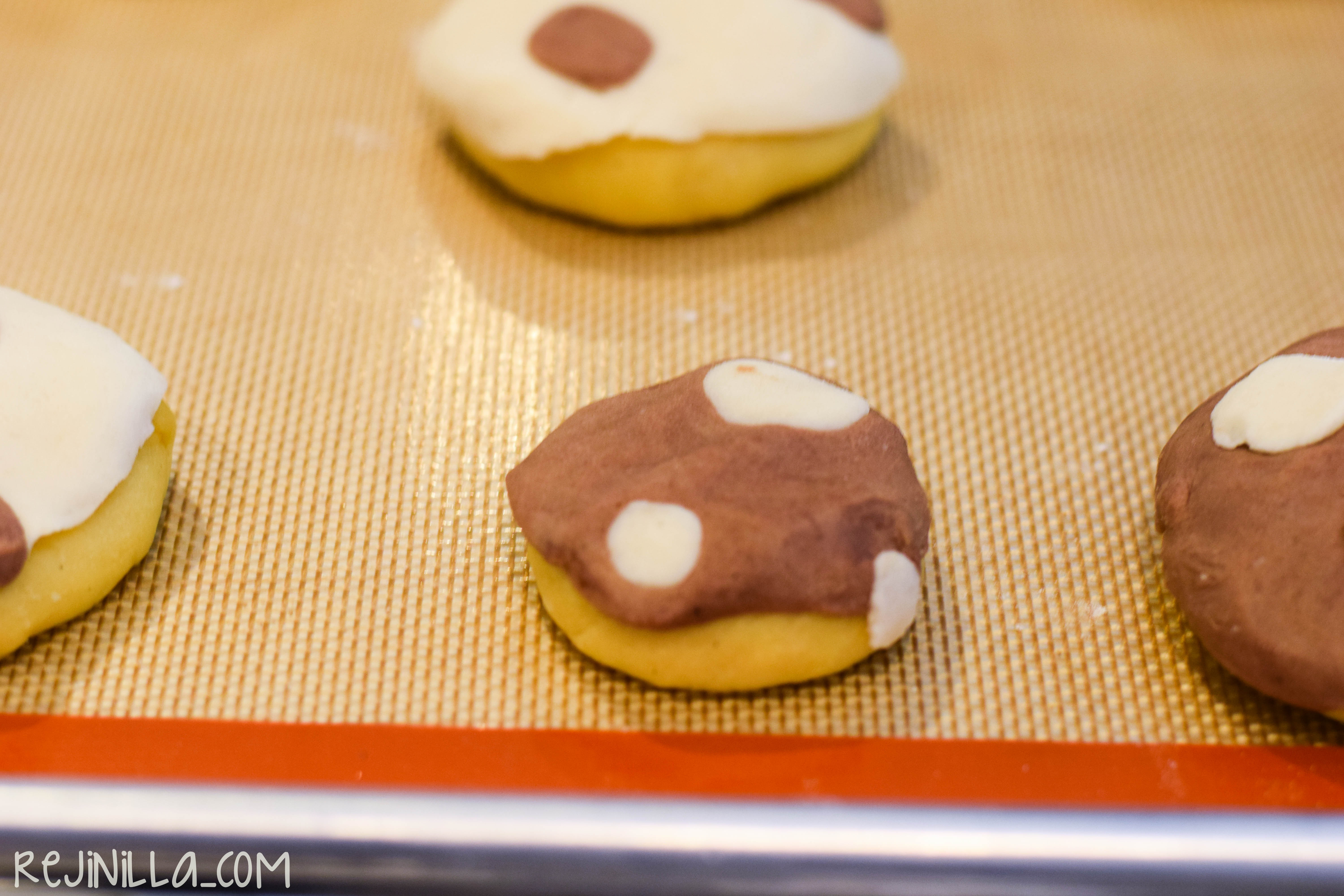 Para ponerle la cubierta, haz bolitas de la masa de la cubierta y aplana, coloca sobre los bollitos, aplastando ligeramente. No sean como yo, pónganle más cubierta a cada concha!