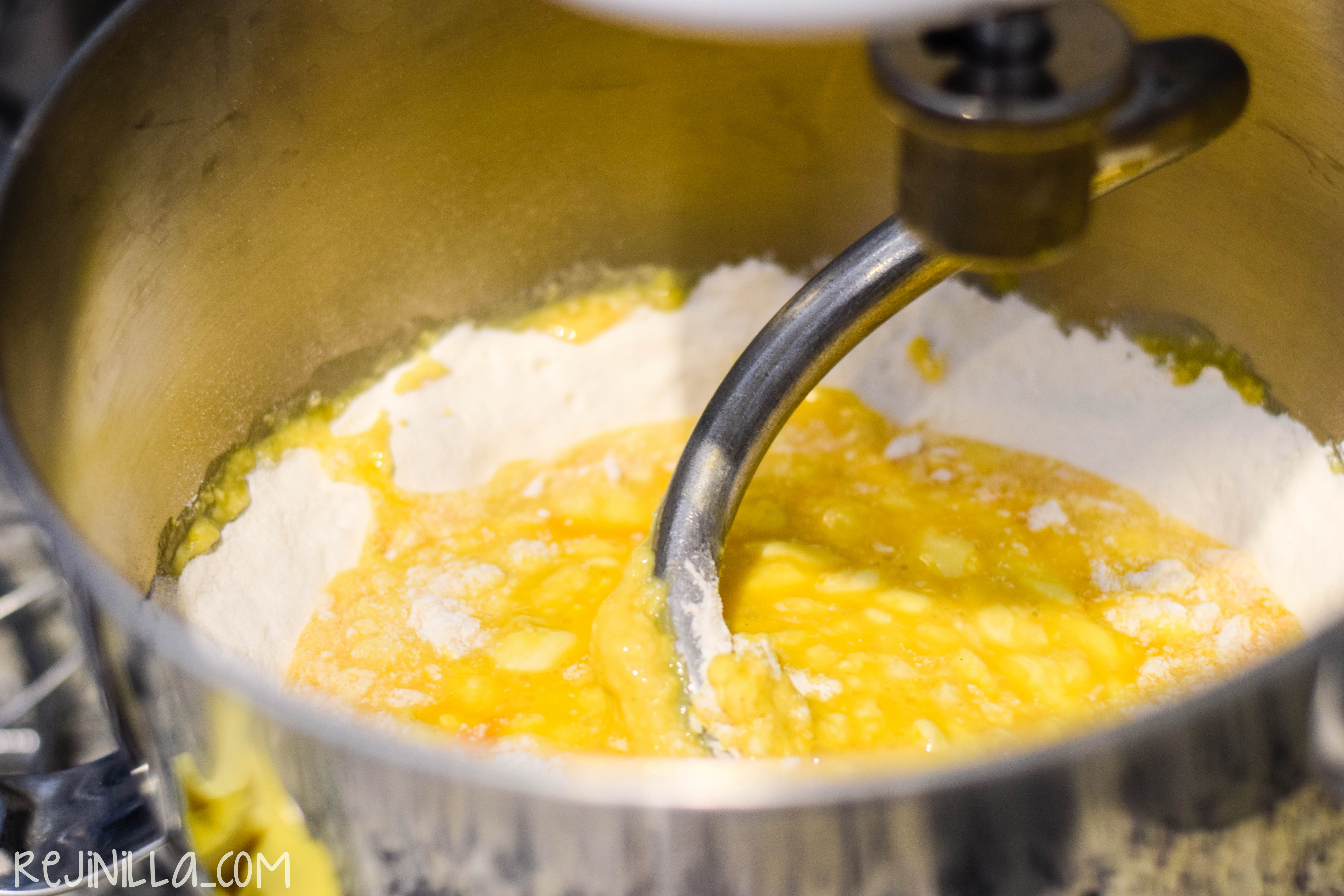Mezcla todos los ingredientes en la batidora con el gancho o bien a mano, al final va la mantequilla. Al final terminé a mano porque así es más fácil integrar la mantequilla, pedazo por pedazo hasta tener una masa muy tersa.