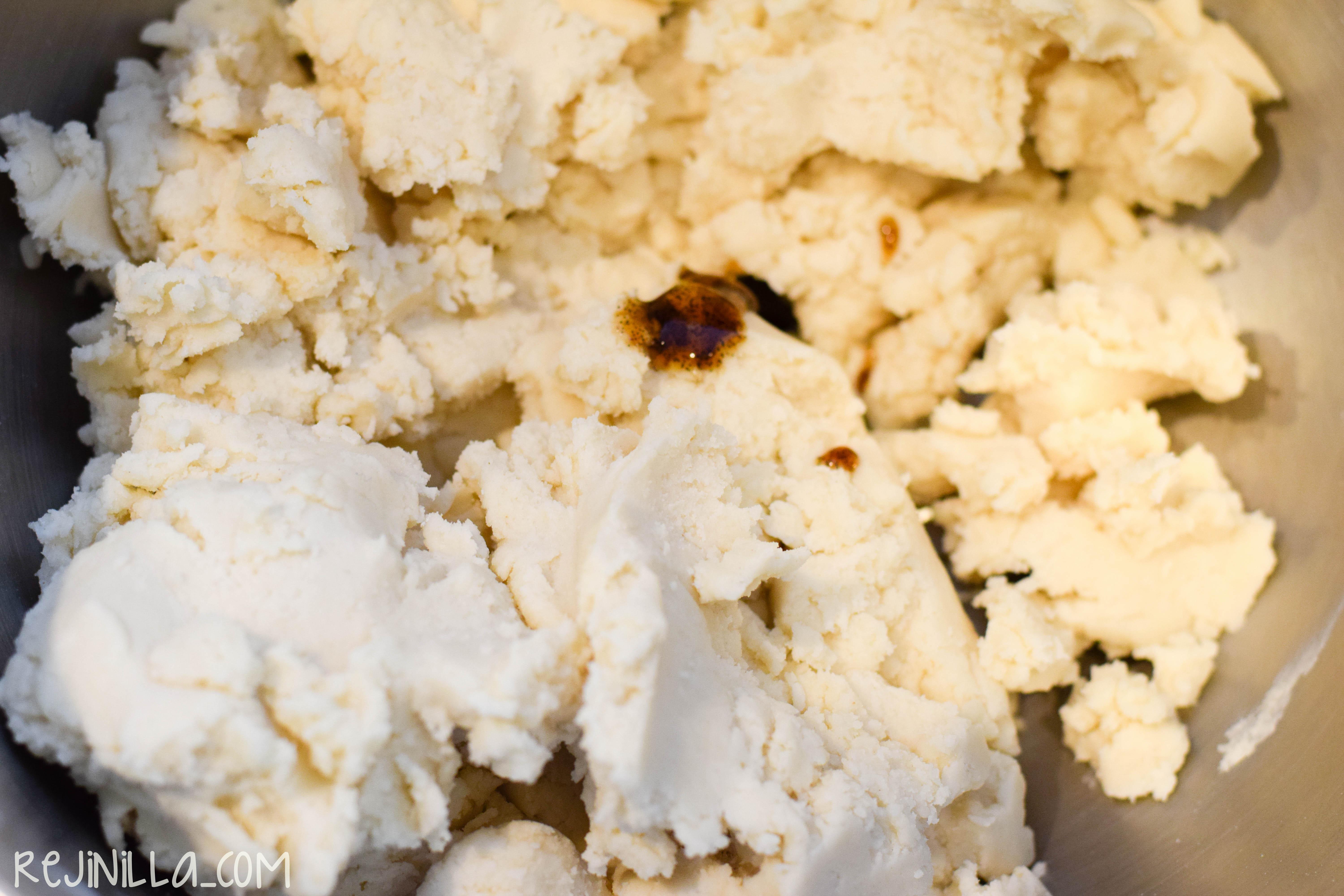 Mientras tanto, haz la cubierta. Partes iguales de manteca, harina y azúcar glass, y una cucharadita de vainilla.