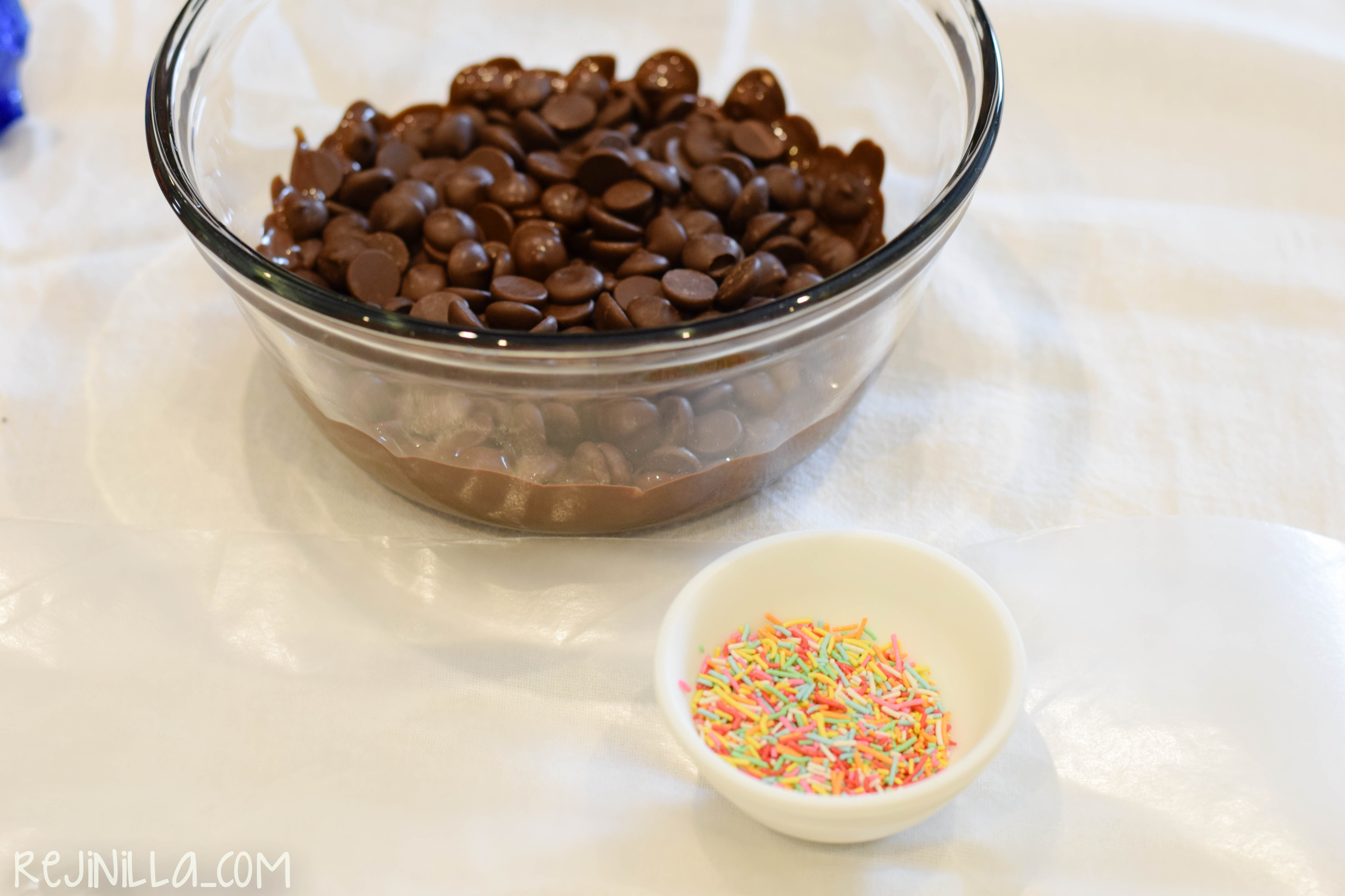 • Deja que el chocolate se seque. Espolvorea chochitos.