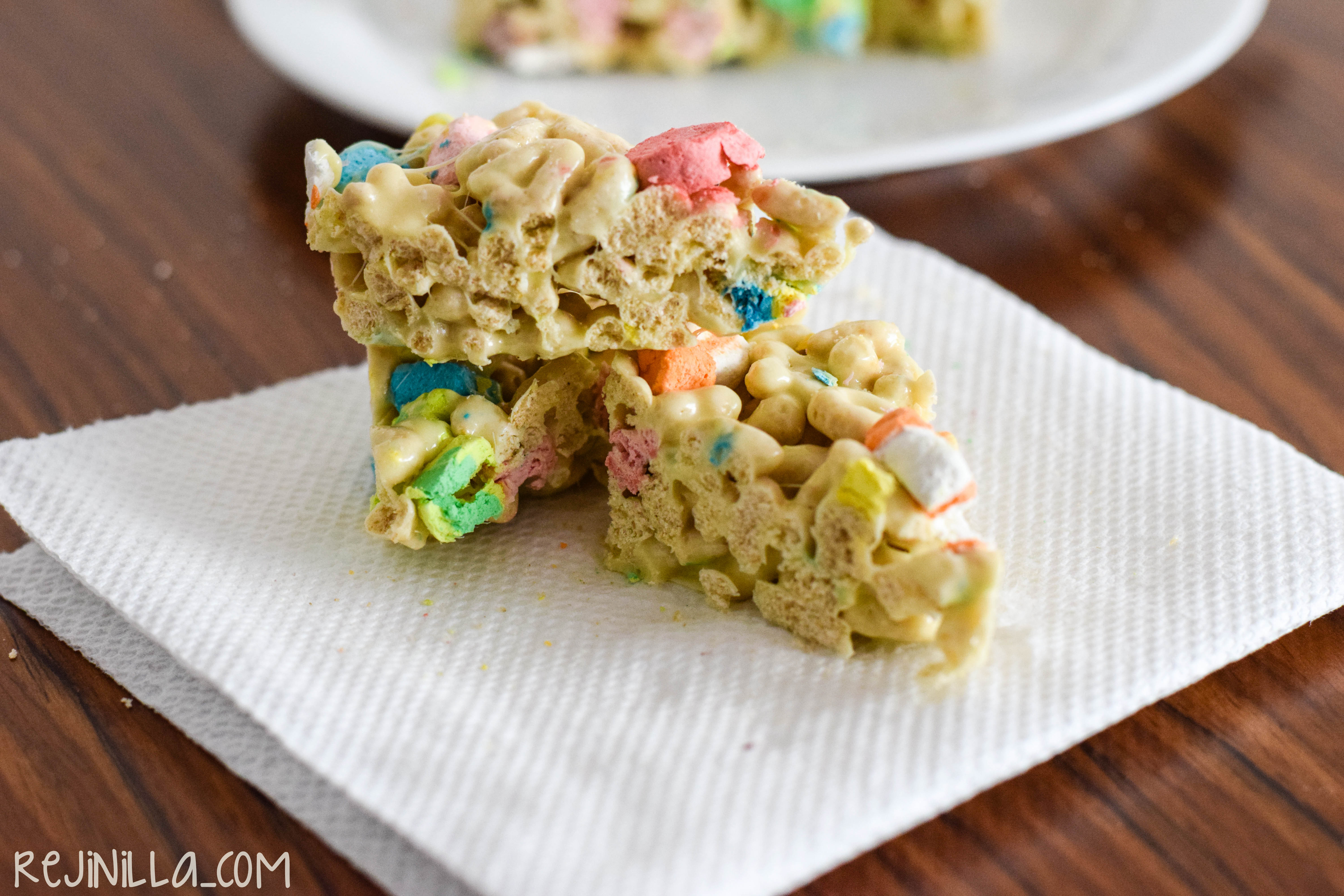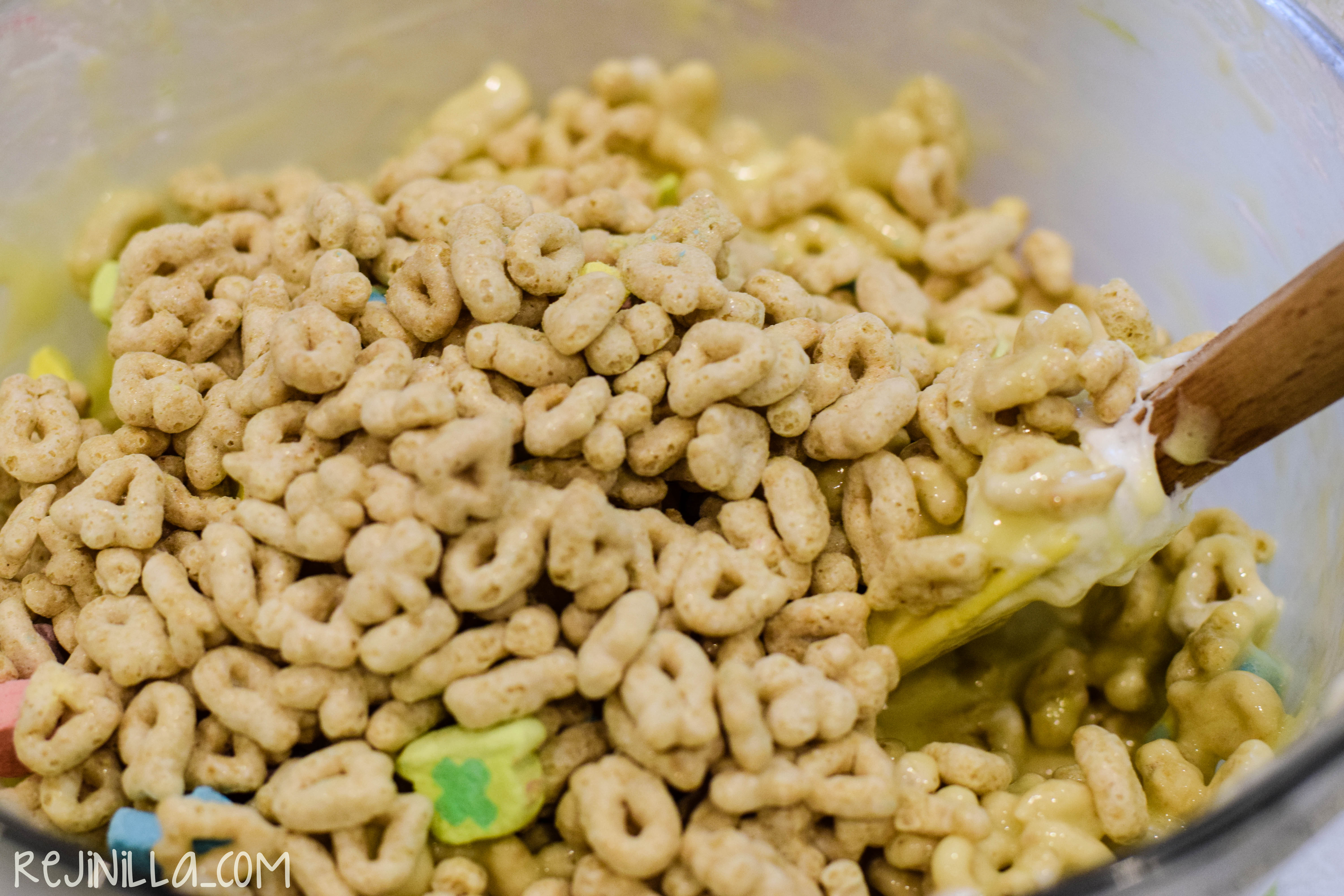 La clásica combinación de bombón con cereal es un favorito de todos. Esta vez, aprovechando el Día de San Patricio, un twist delicioso: usar Lucky Charms. Es muy fácil de hacer y los mini bombones del cereal le dan un sabor, textura y color original y peligrosamente adictivo. Si al final estos treats te traen buena suerte este 17 de marzo, mejor.