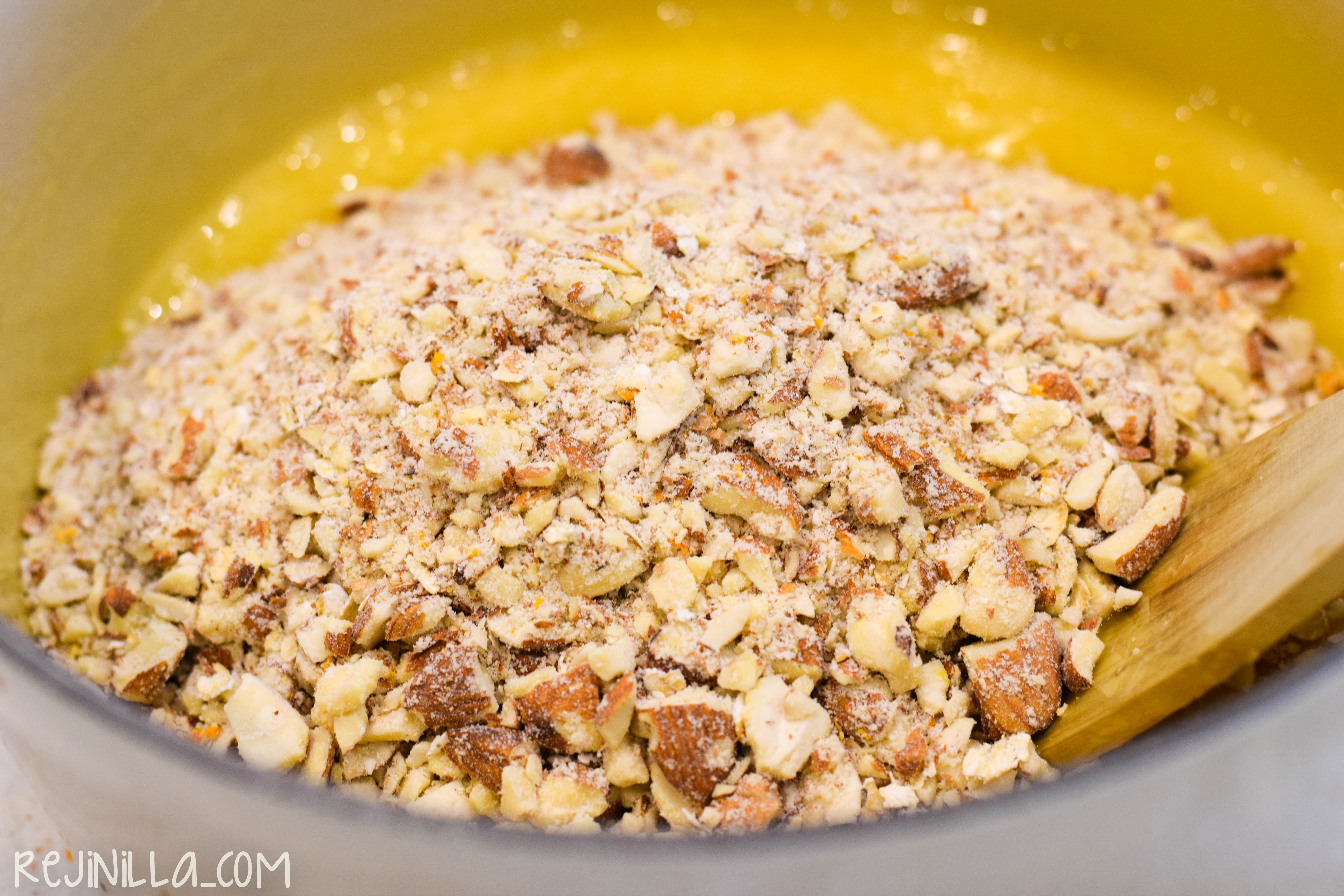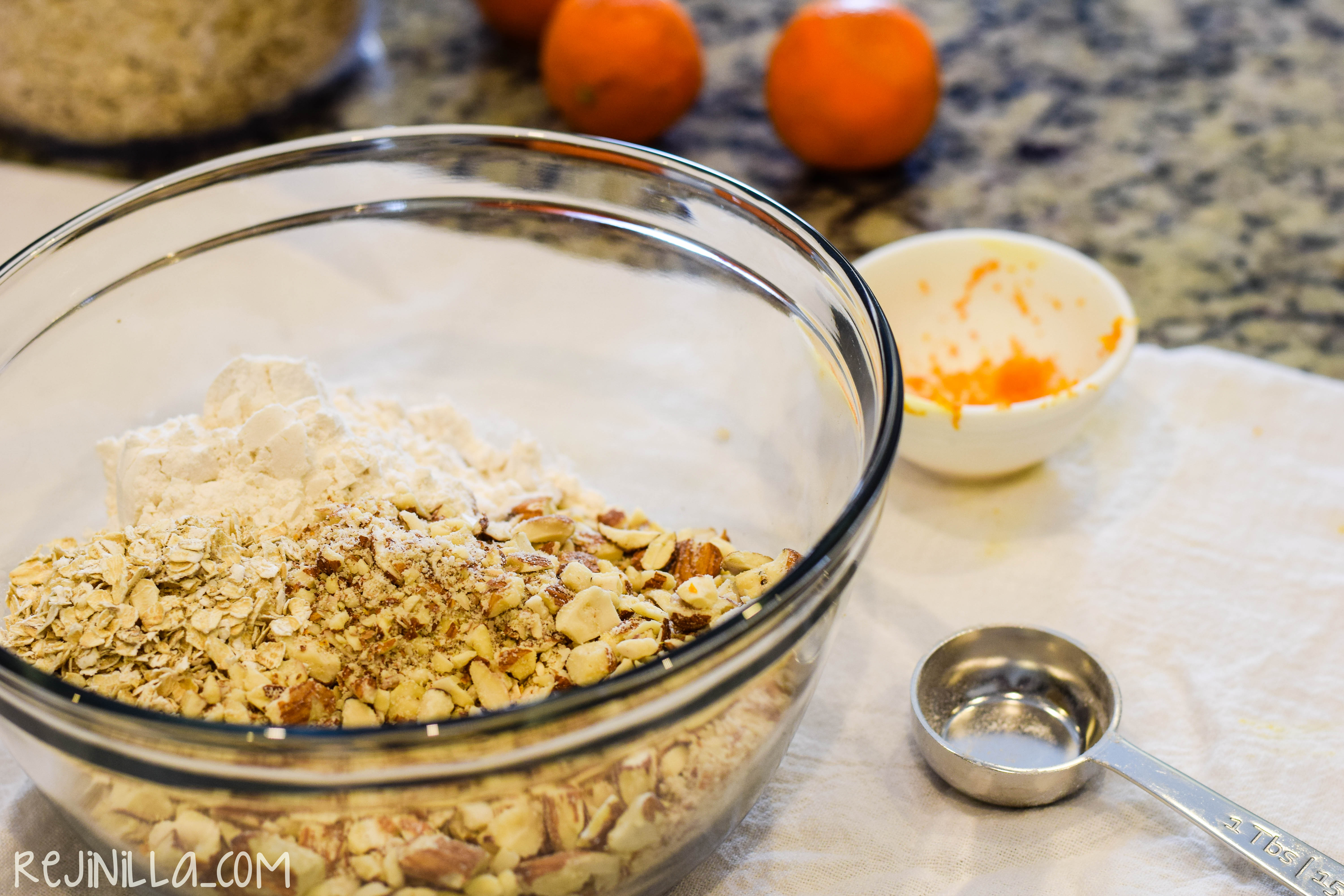 Muele la almendra (o usa almendra fileteada) y agrega a los ingredientes secos.