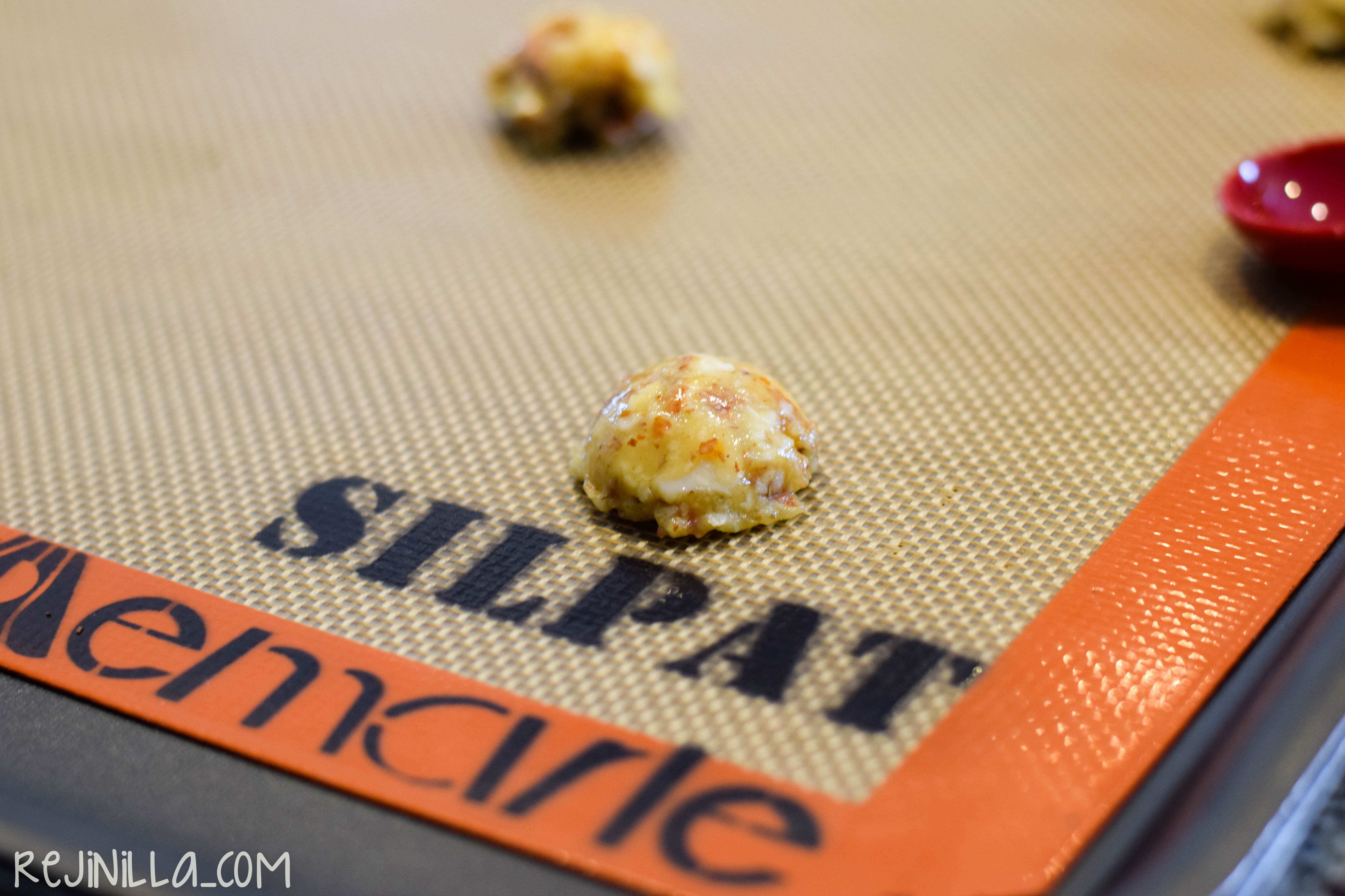 Haz bolitas con la masa (moja las manos si está demasiado pegajosa) y acomoda en charolas para hornear, dejando espacio entre una y otra.