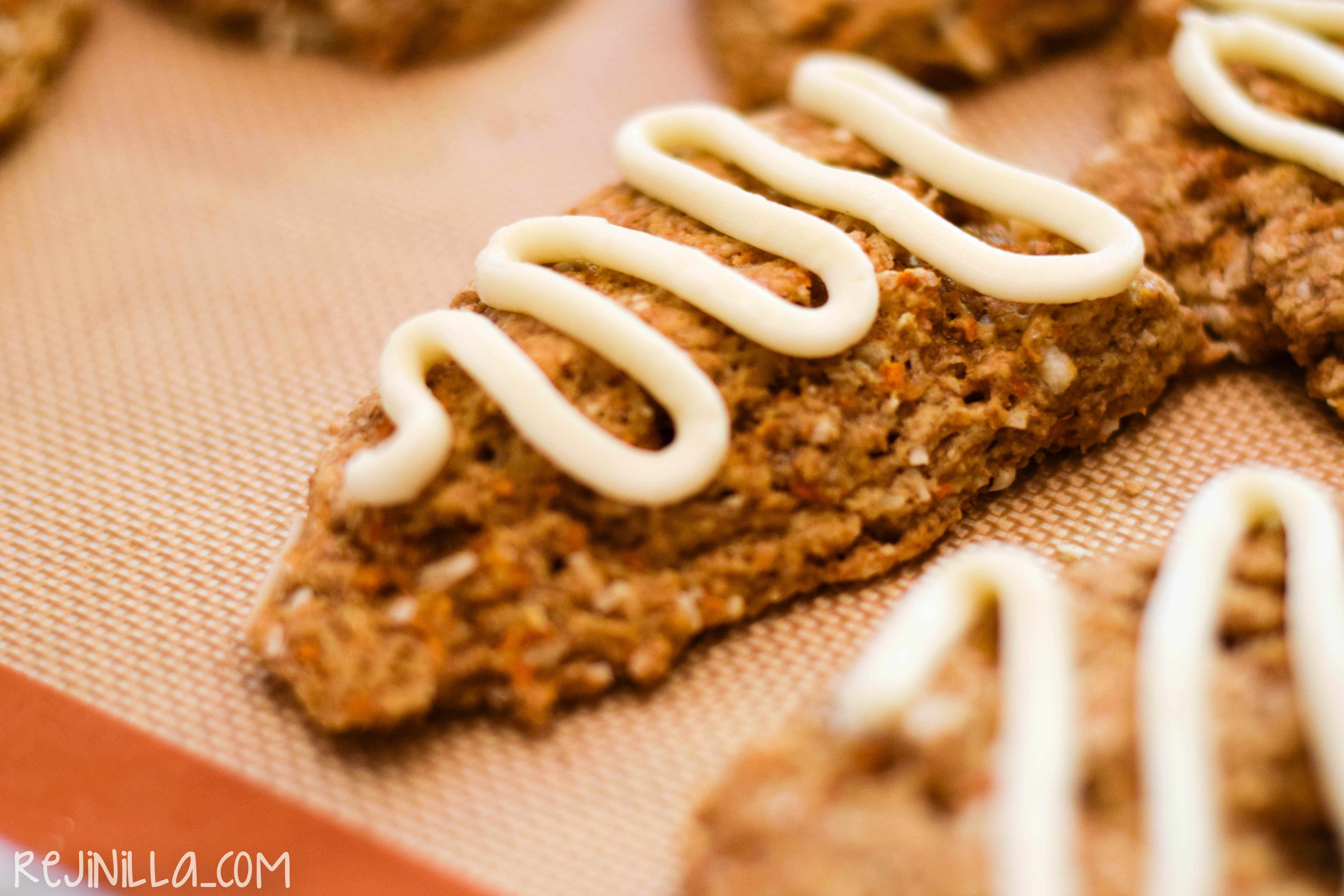 Tip para decorar estos scones: pon el glaseado en una bolsa de plástico y corta la puntita.