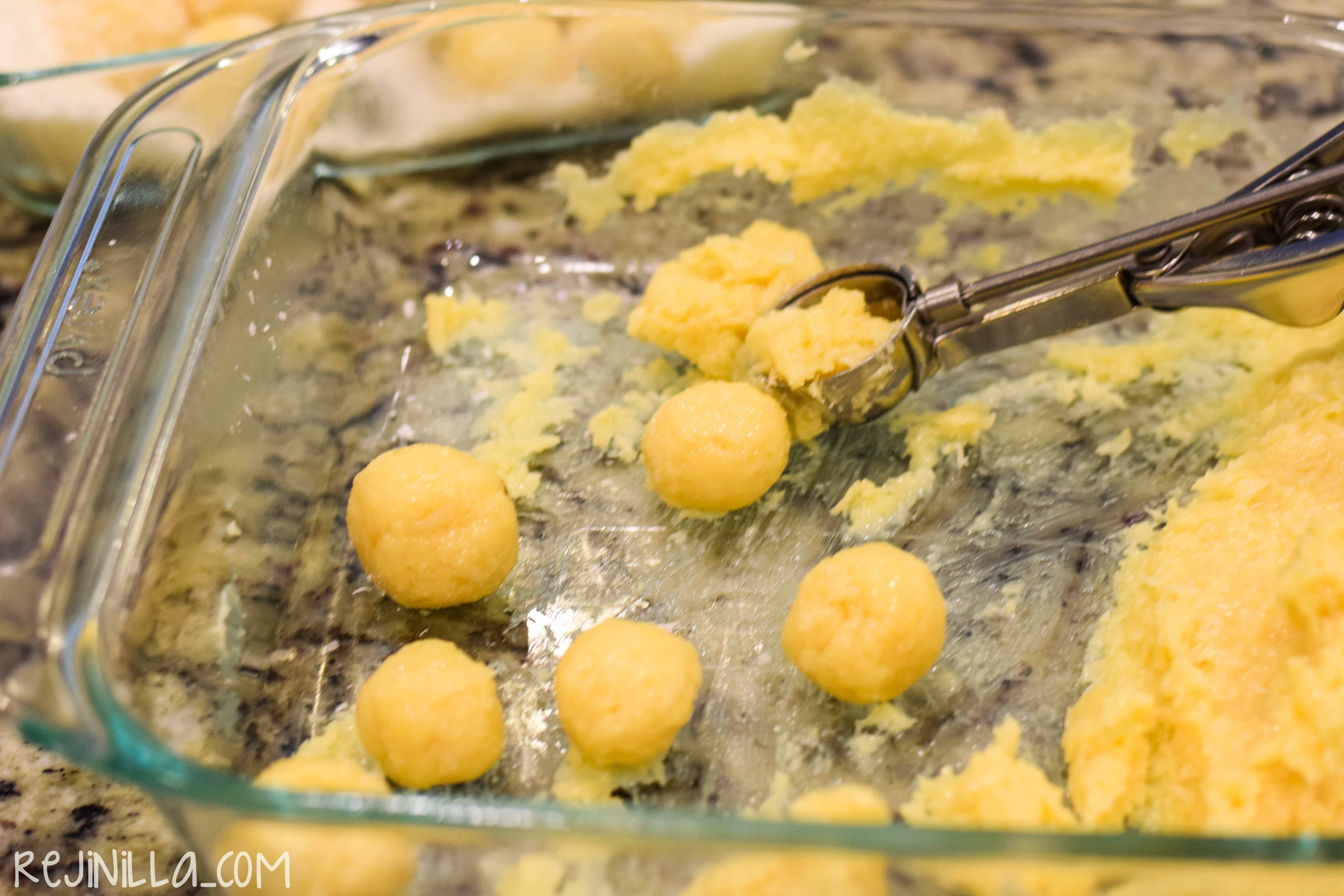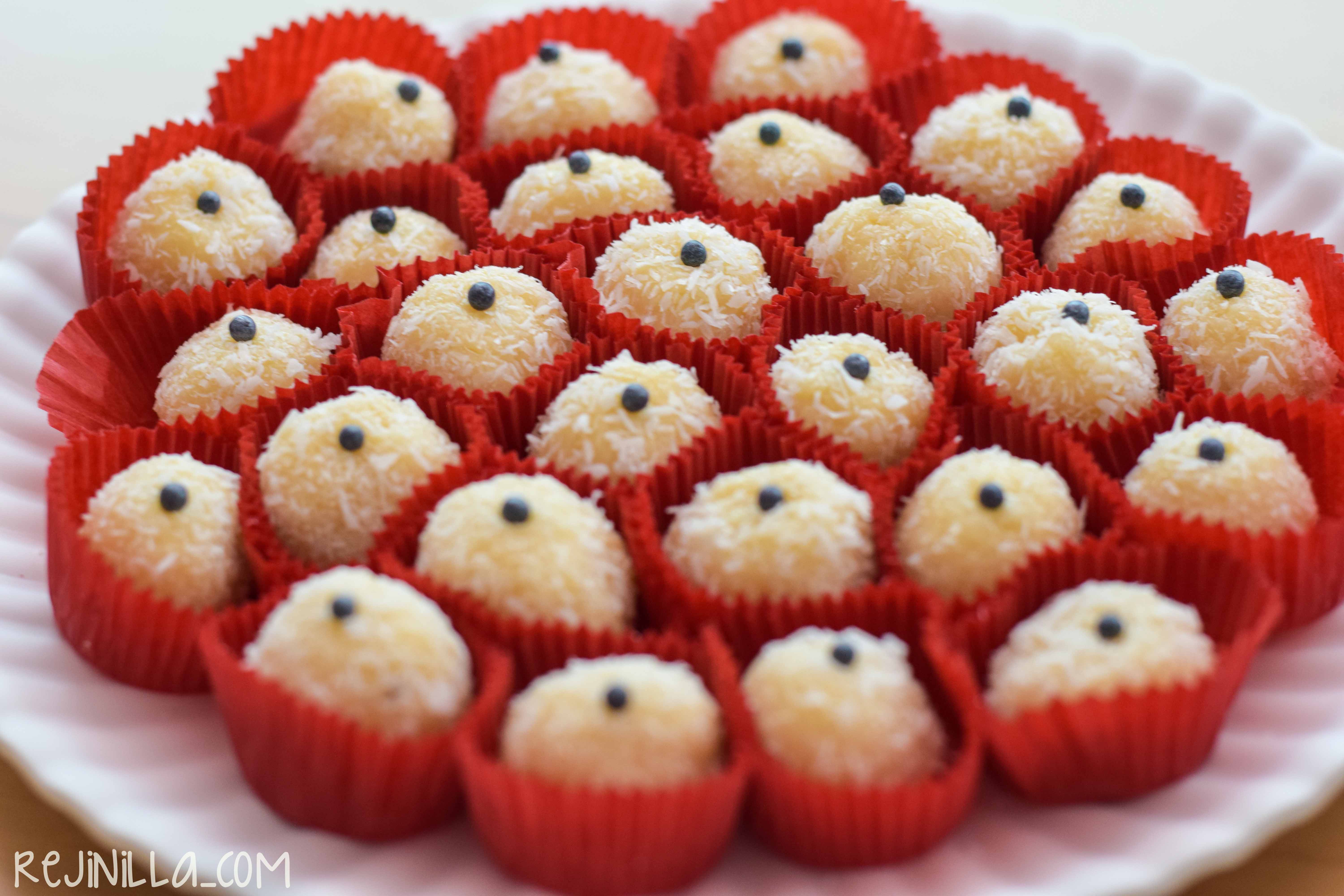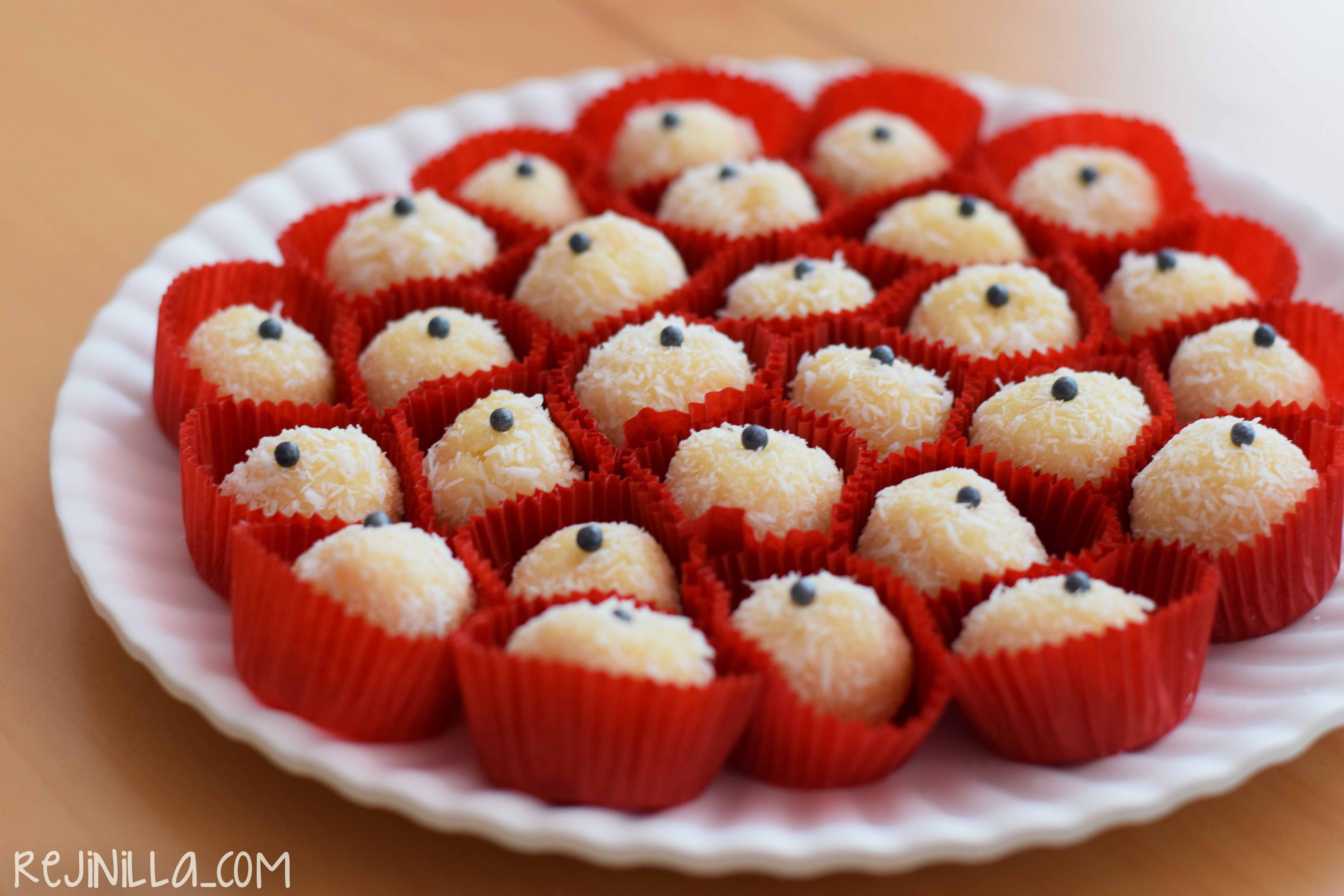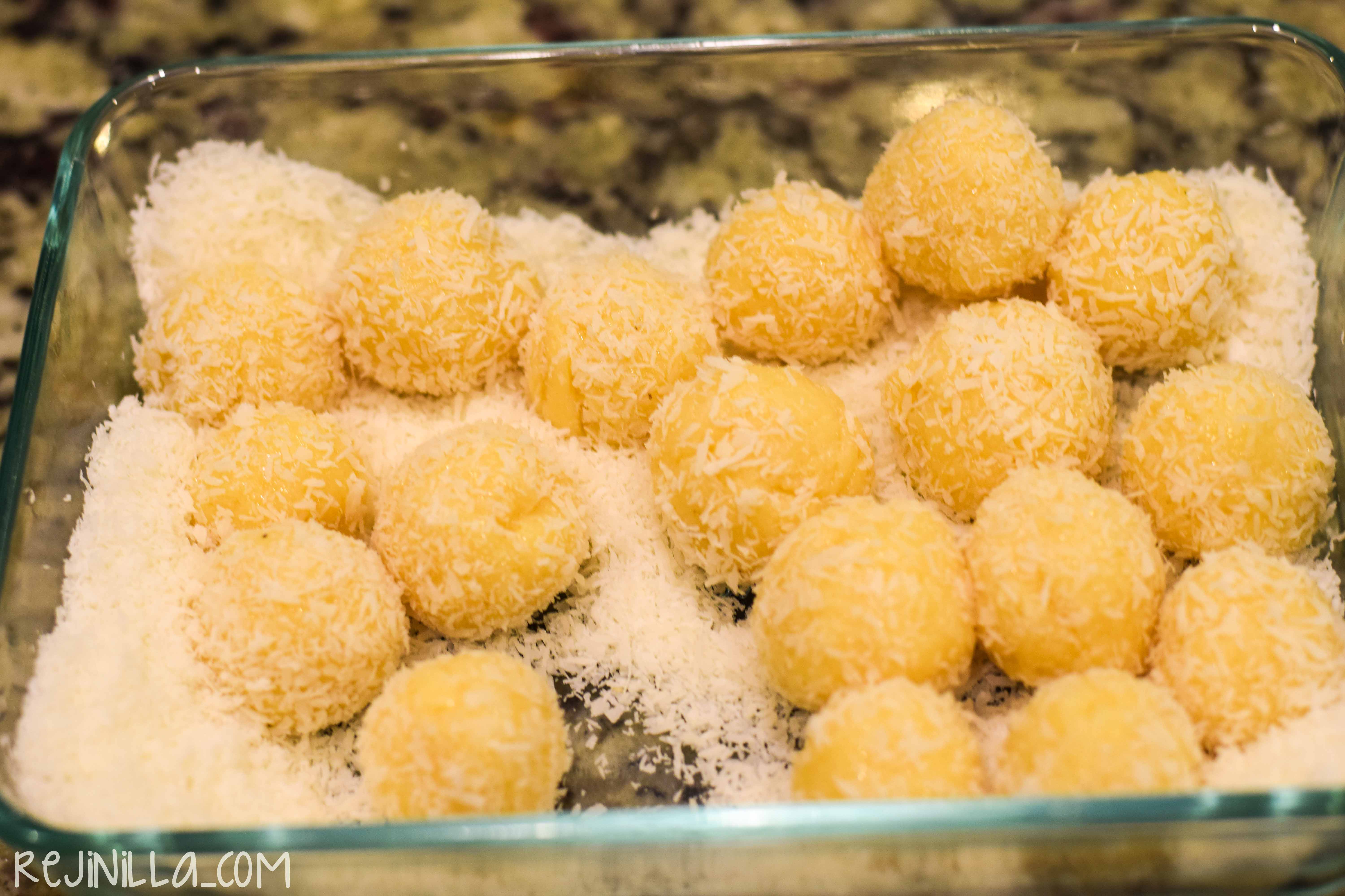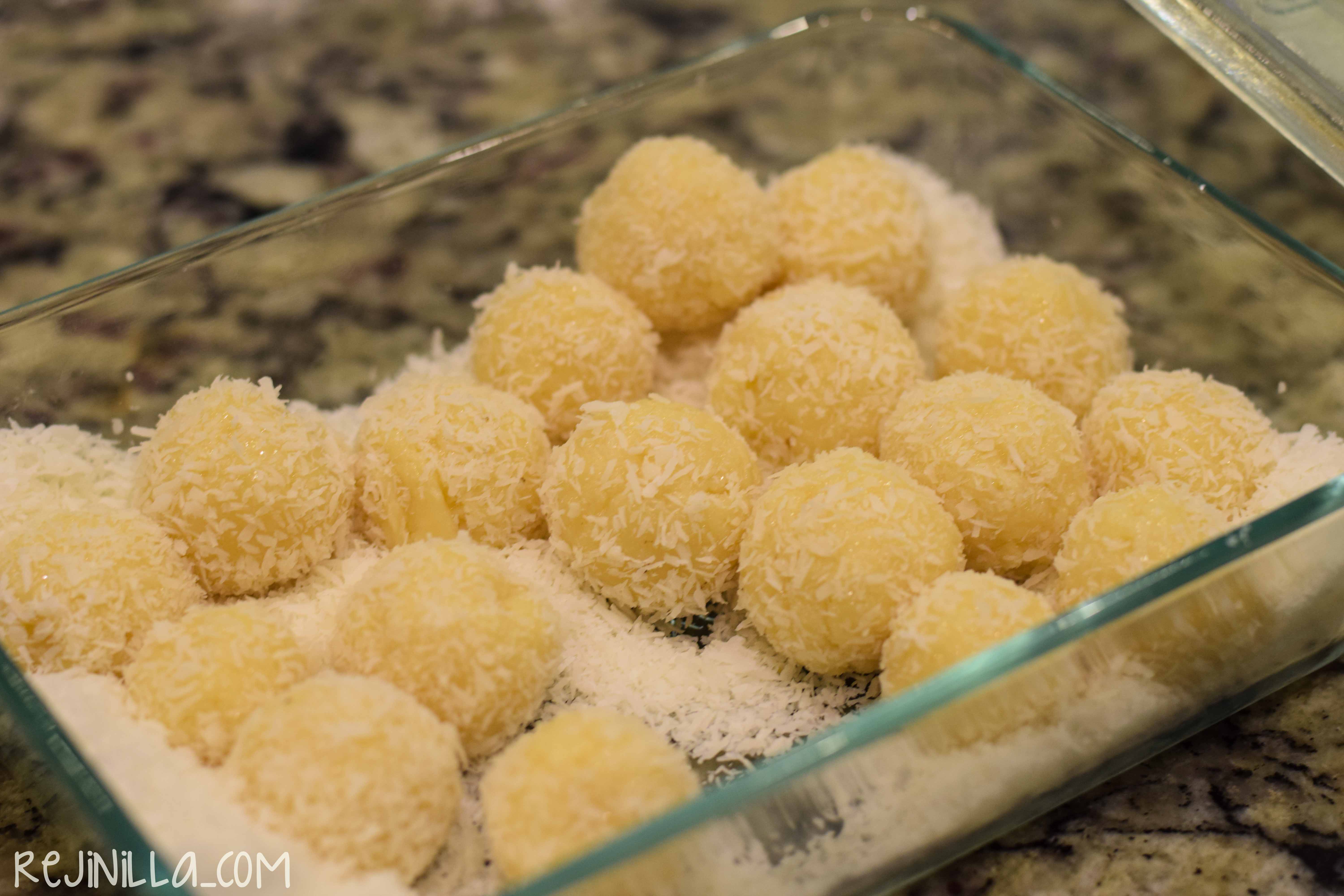 Retira del fuego y vacía en otro molde o plato para que se enfrie. Haz bolitas y pasa por coco rallado.