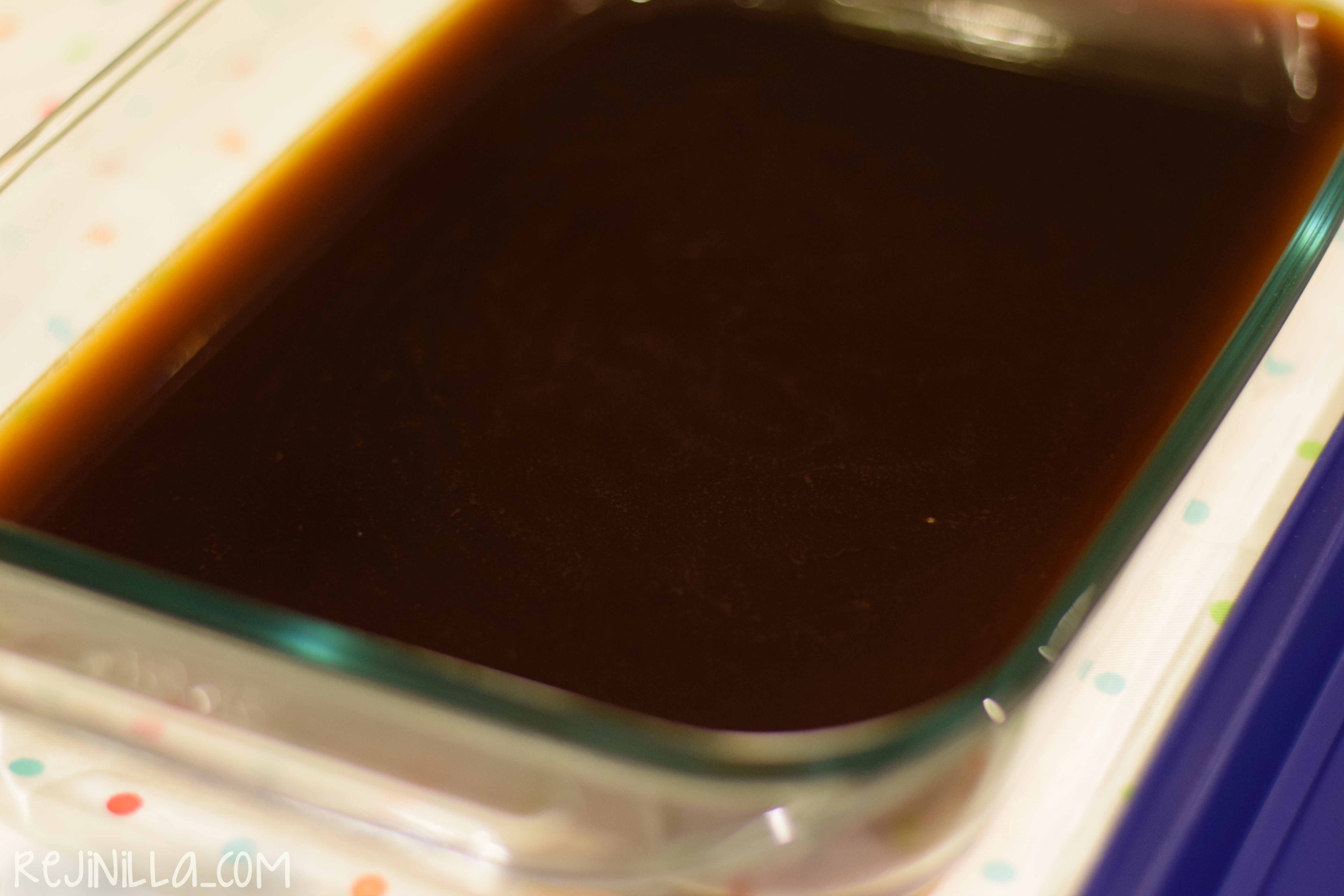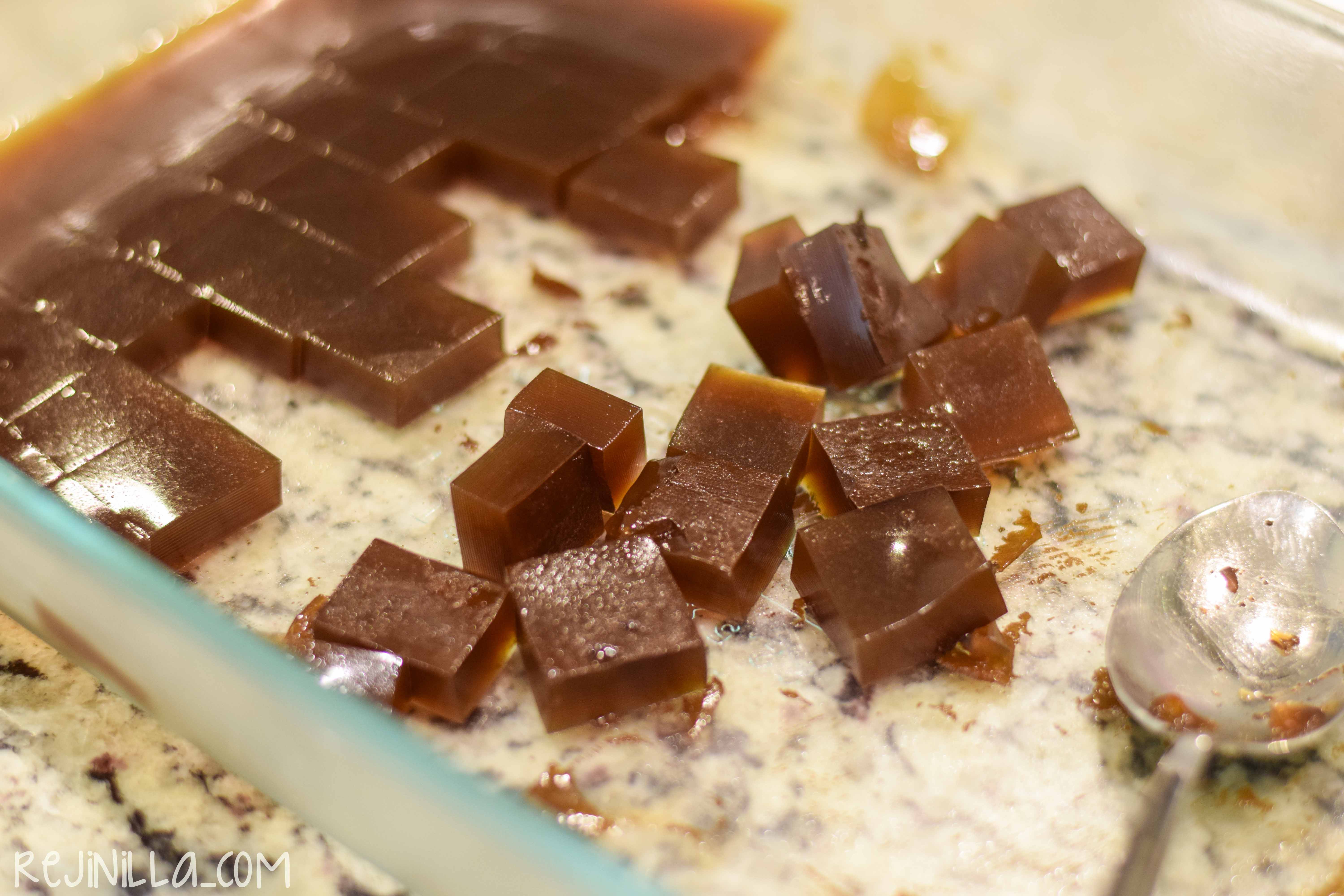 Haz la gelatina de café, hidrata la grenetina en un poco de agua antes. Endulza un poquito y pon a cuajar.