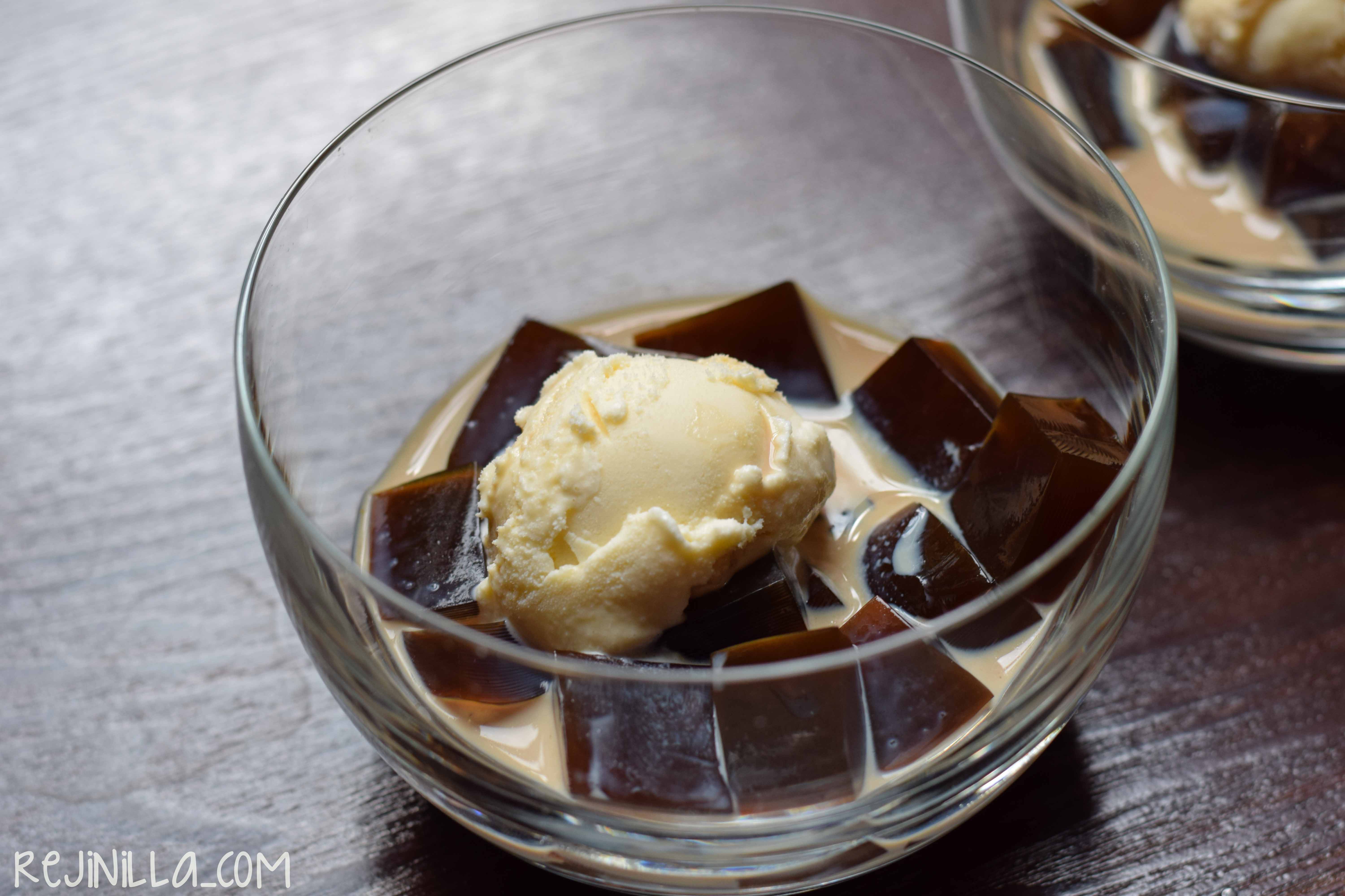 Horas después… corta la gelatina y sirve con helado de vainilla y Bailey’s, licor o crema de café al gusto.
