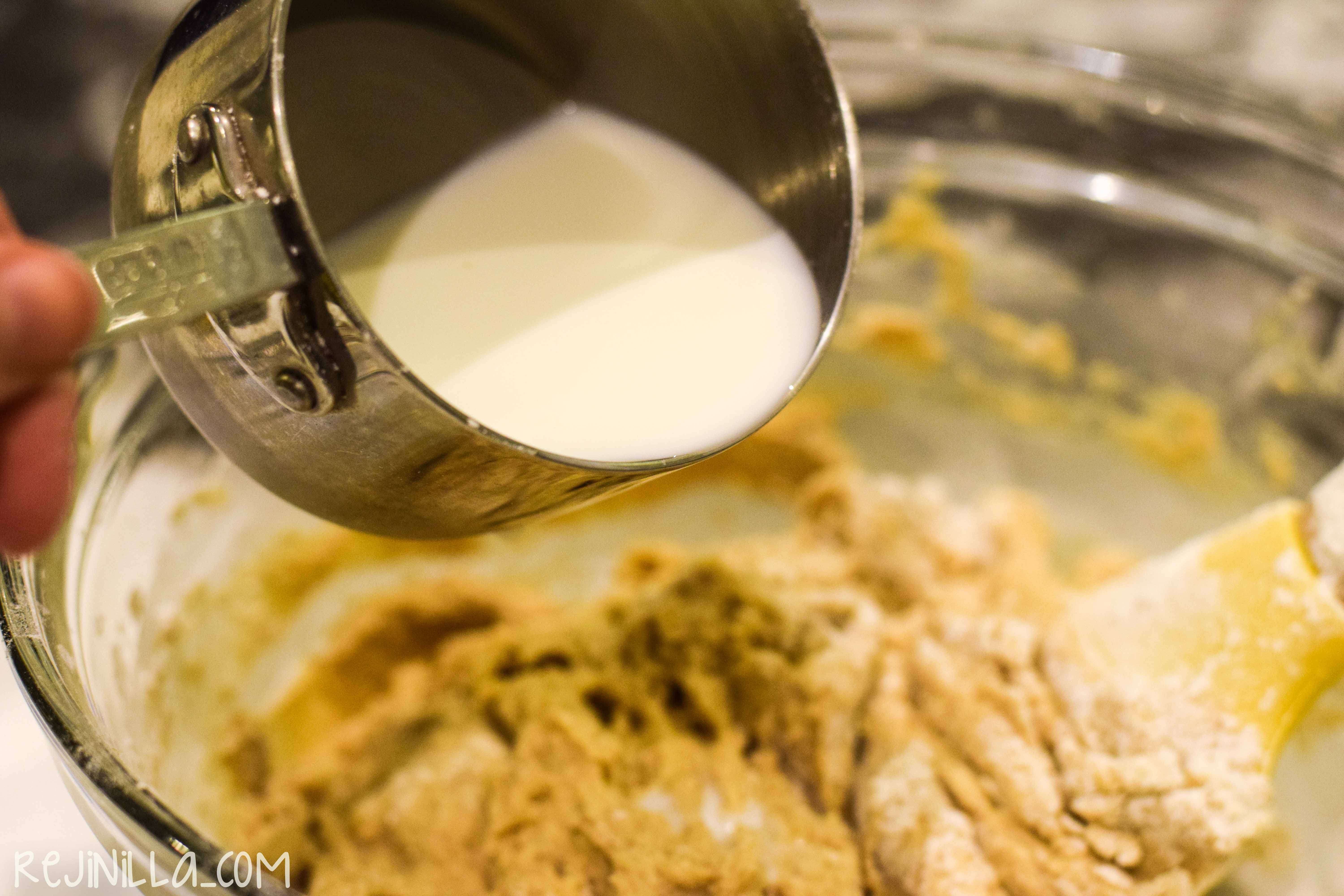 Alterna con la leche y agrega el resto de los ingredientes secos. Envuelve para integrar los ingredientes.