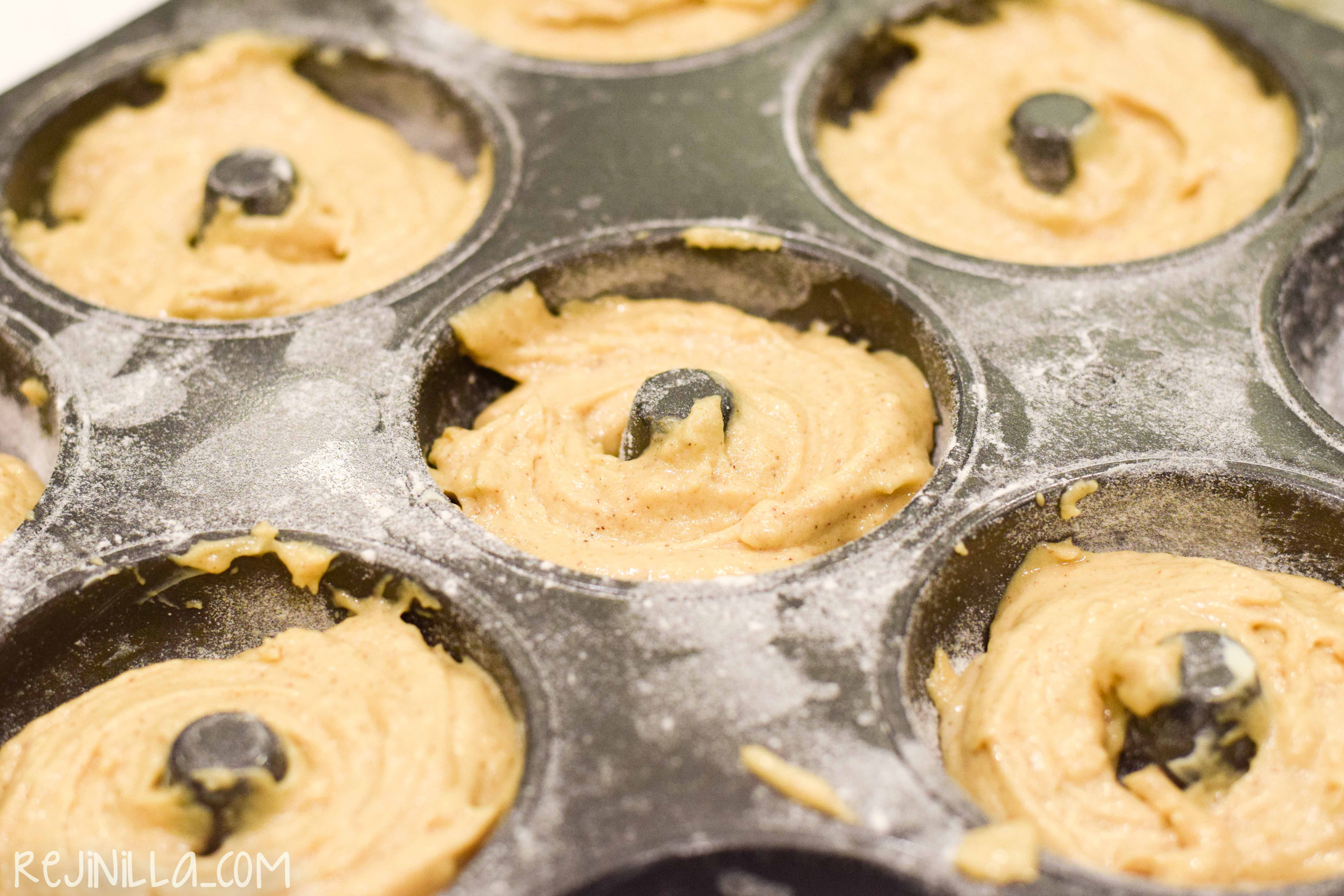 Ahora, un punto muy importante que a veces se nos olvida a todos (y es una pesadilla), hay que engrasar y enharinar muy bien los moldes. Yo usé un molde de bolitas y otro de donitas, un molde de mini muffins o muffins normales funciona también, solo ajusta el tiempo de cocción.