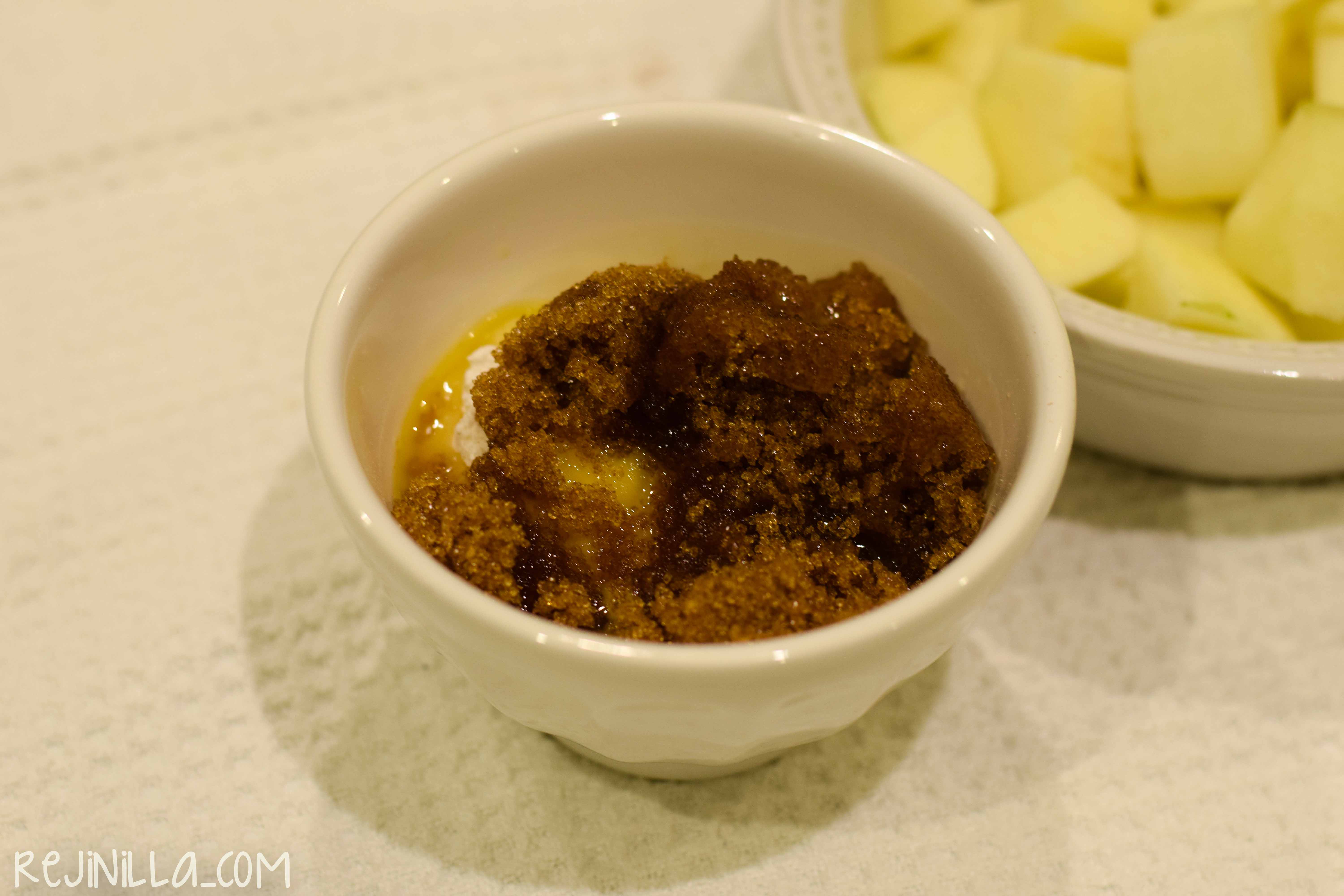 Pon la mezcla sobre la manzana y al horno por 35 minutos (dependiendo del molde).