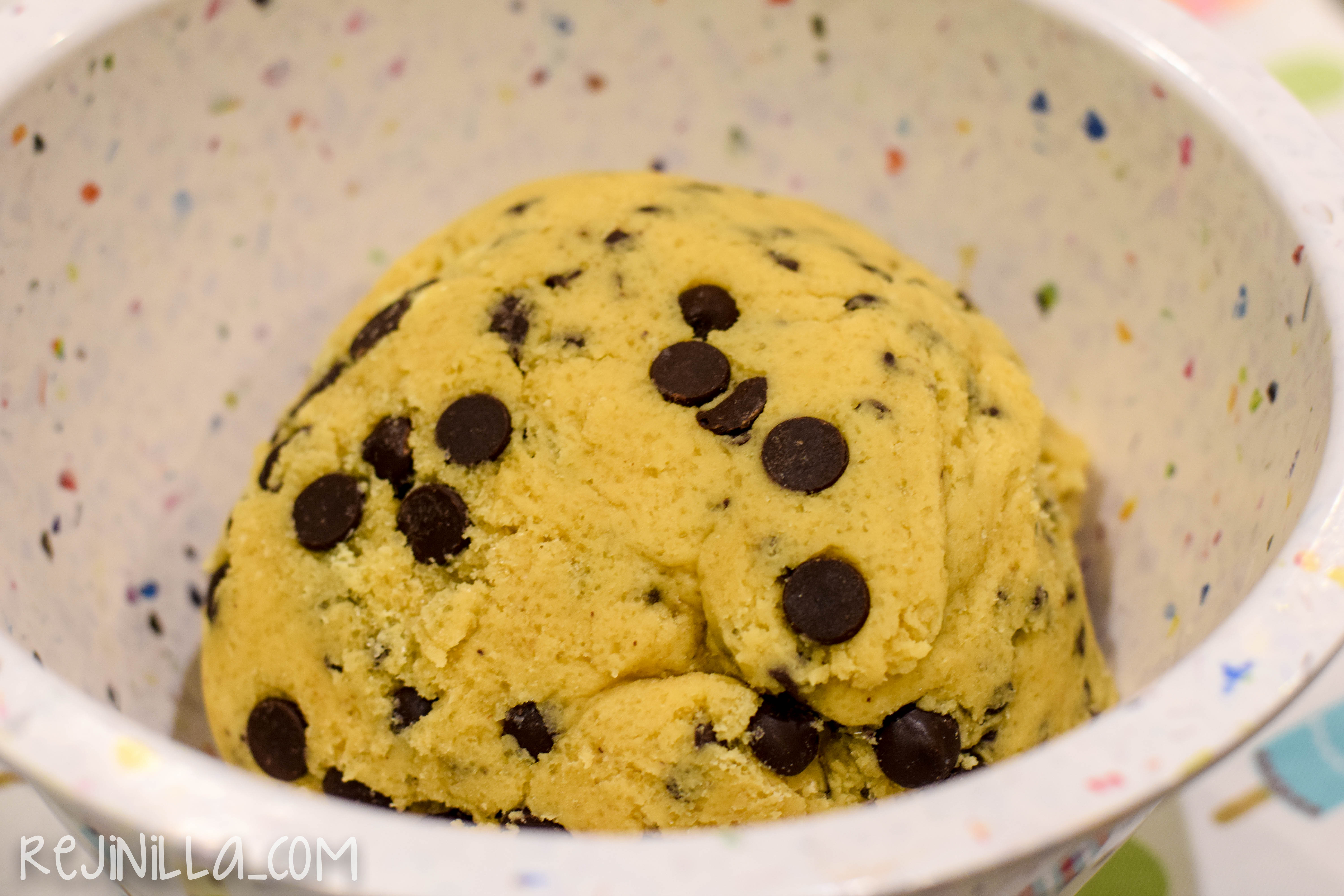Empieza haciendo la masa de chispas de chocolate, y agrega las chispas, yo usé una mezcla de mini chispas y chispas normales. Usa las que tengas a la mano.