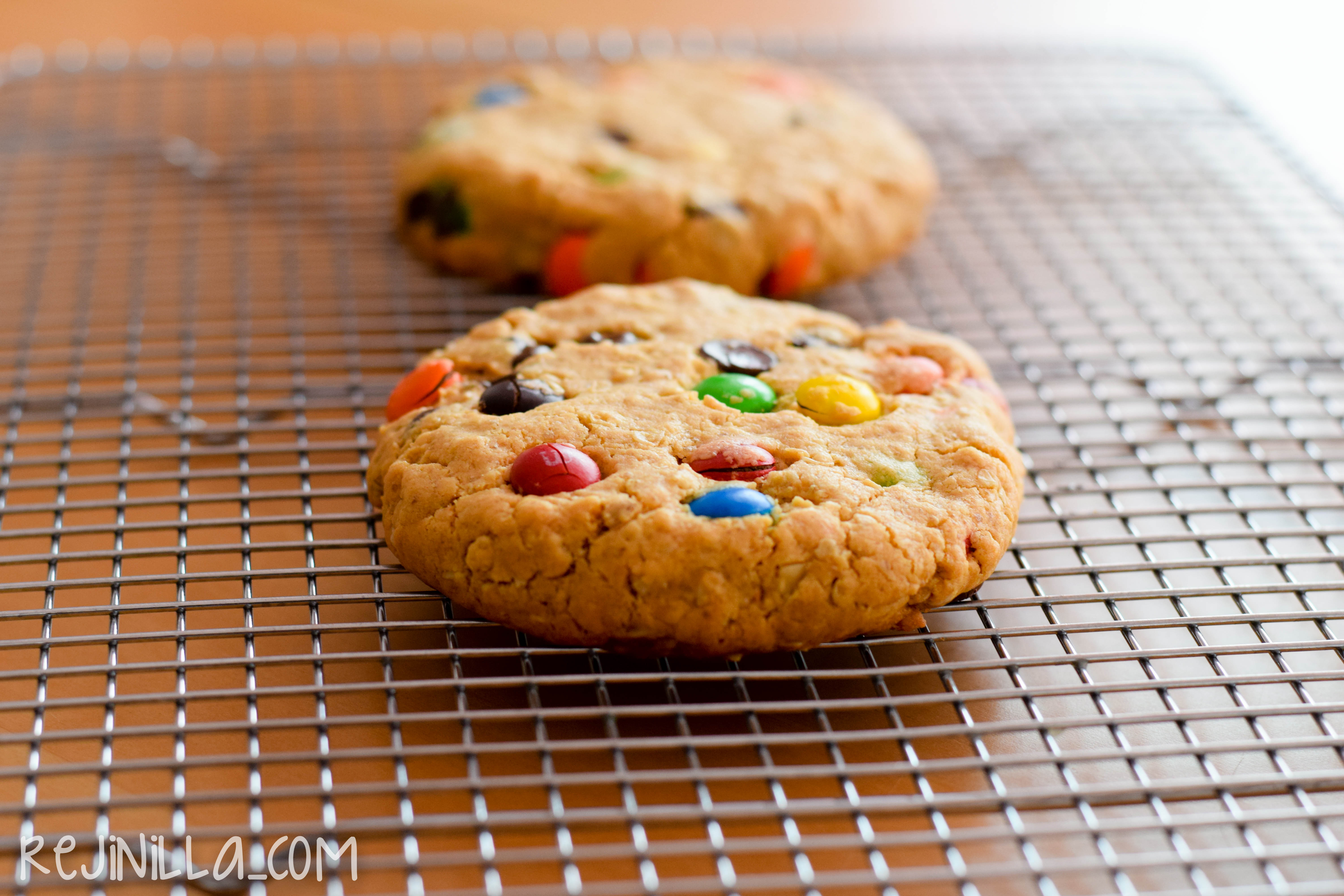 Hay veces que quiero una galleta, una buena galleta pero no me interesan las dos docenas en la receta, sólo quiero una o dos para compartir. Esta receta es una de esas, tiene crema de cacahuate, avena, m&ms y chispas de chocolate. Aunque está en el horno en minutos, sabe a que estuviste todo el día preparándolas — y sólo salen dos galletas grandecitas, no más.