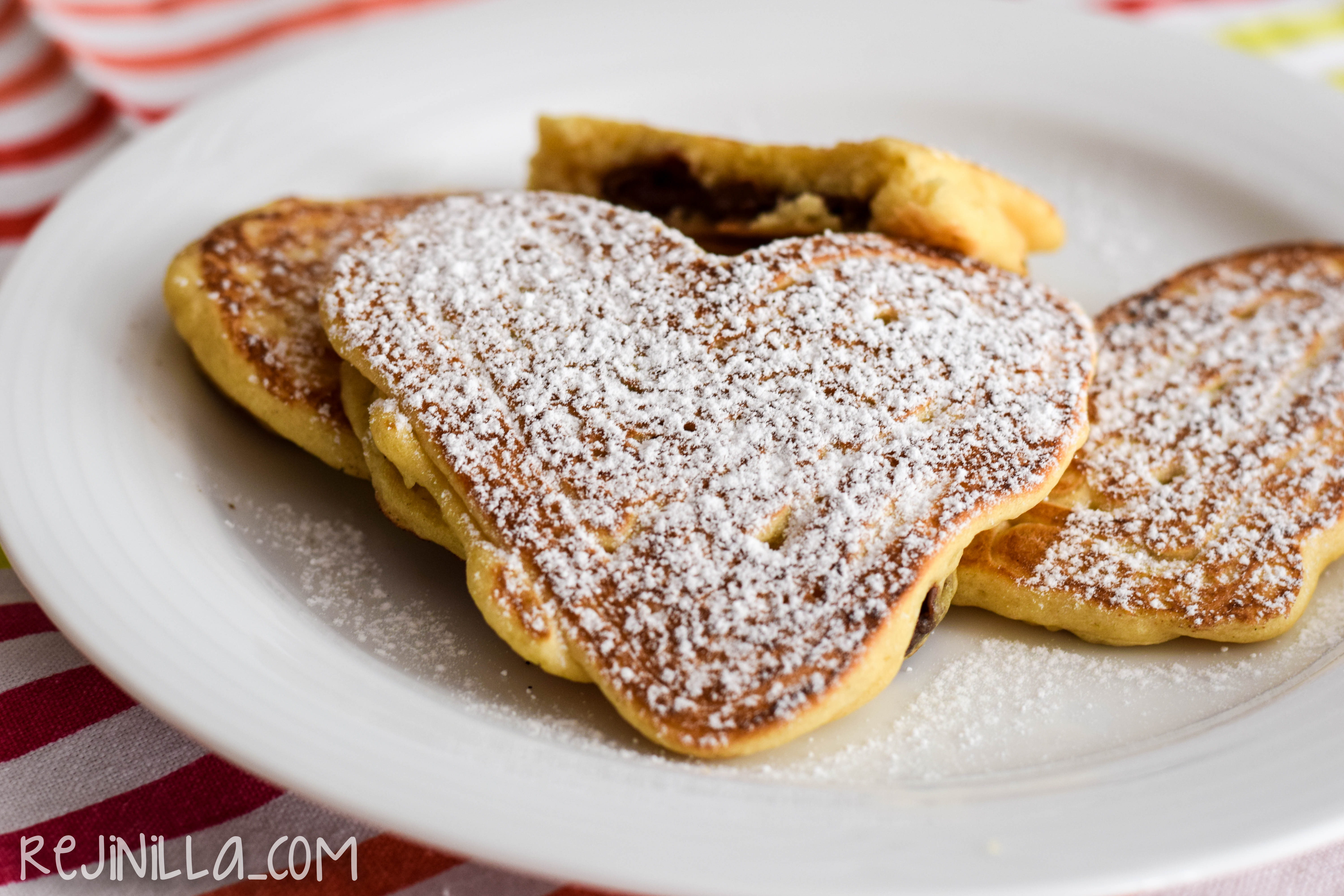 Este es un tip más que receta, delicioso e ideal para San Valentín o para cualquier día del año… La verdad es que después de probar los hotcakes rellenos de Nutella, me pregunto por qué no se me había ocurrido antes, ahora me imagino unos de plátano rellenos de Nutella, o con mermelada… las opciones son infinitas!