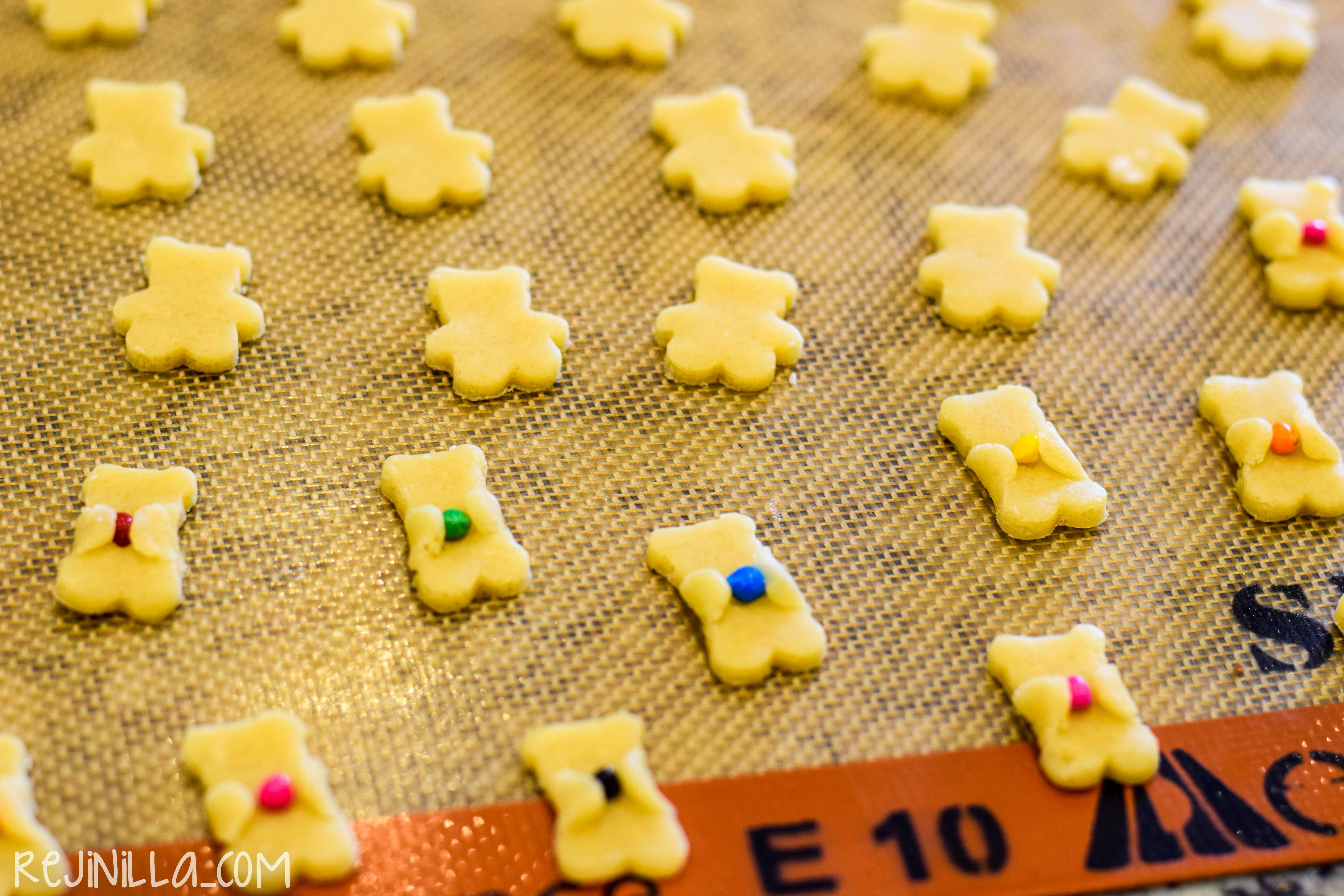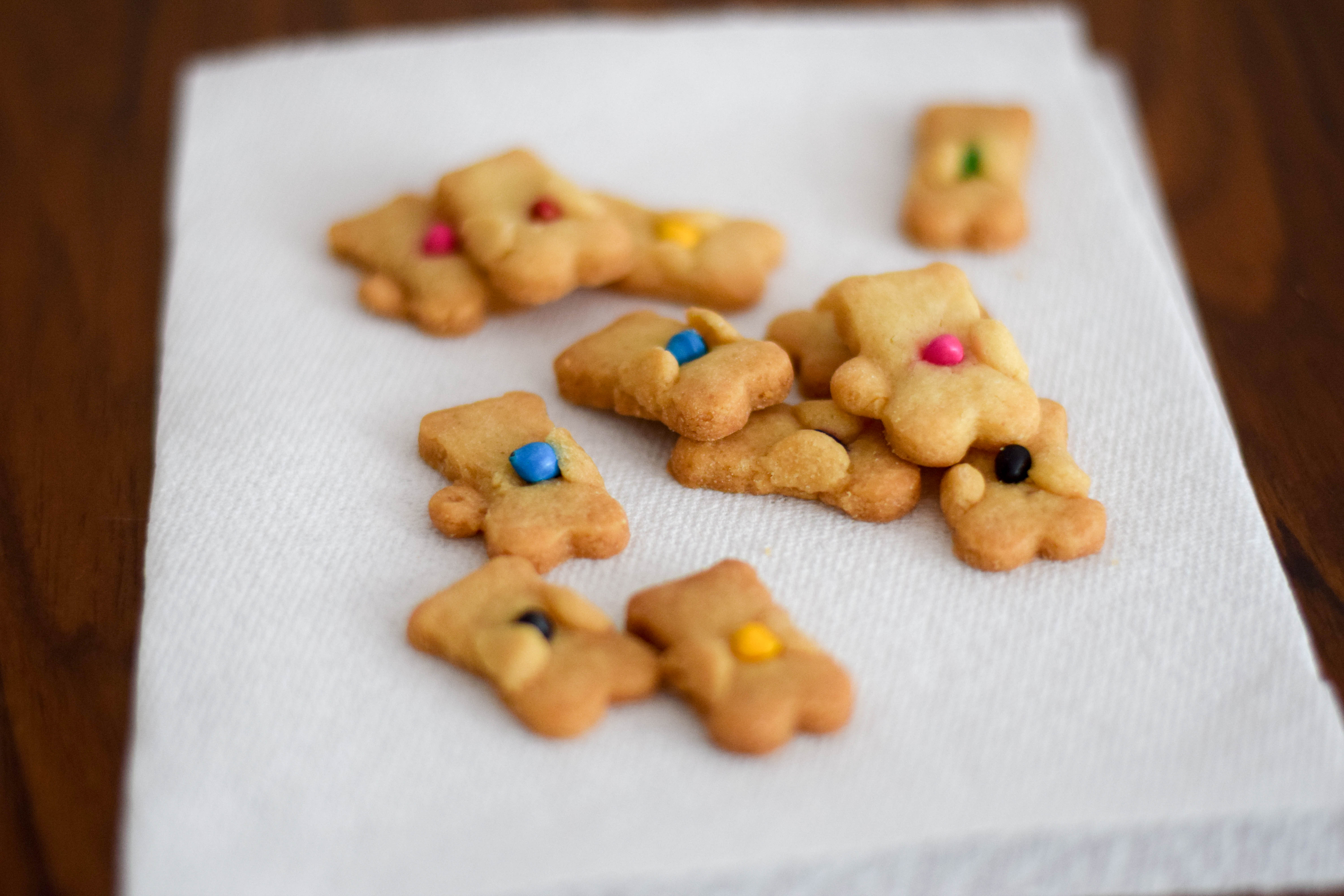 galletitas ositos-1 Extiende tu masa (haz tu masa siguiendo estas instrucciones-sin chispitas), y corta las figuritas.galletitas ositos-2 Aplasta cada brazo de cada oso y pon un dulcecito o chispa o mini luneta entre los brazos.galletitas ositos-3 Hornea hasta que empiecen a dorarse. Dependiendo del tamaño de las galletitas, pueden ser alrededor de 10 minutos…ositos-2 ositos-3 ositos-4