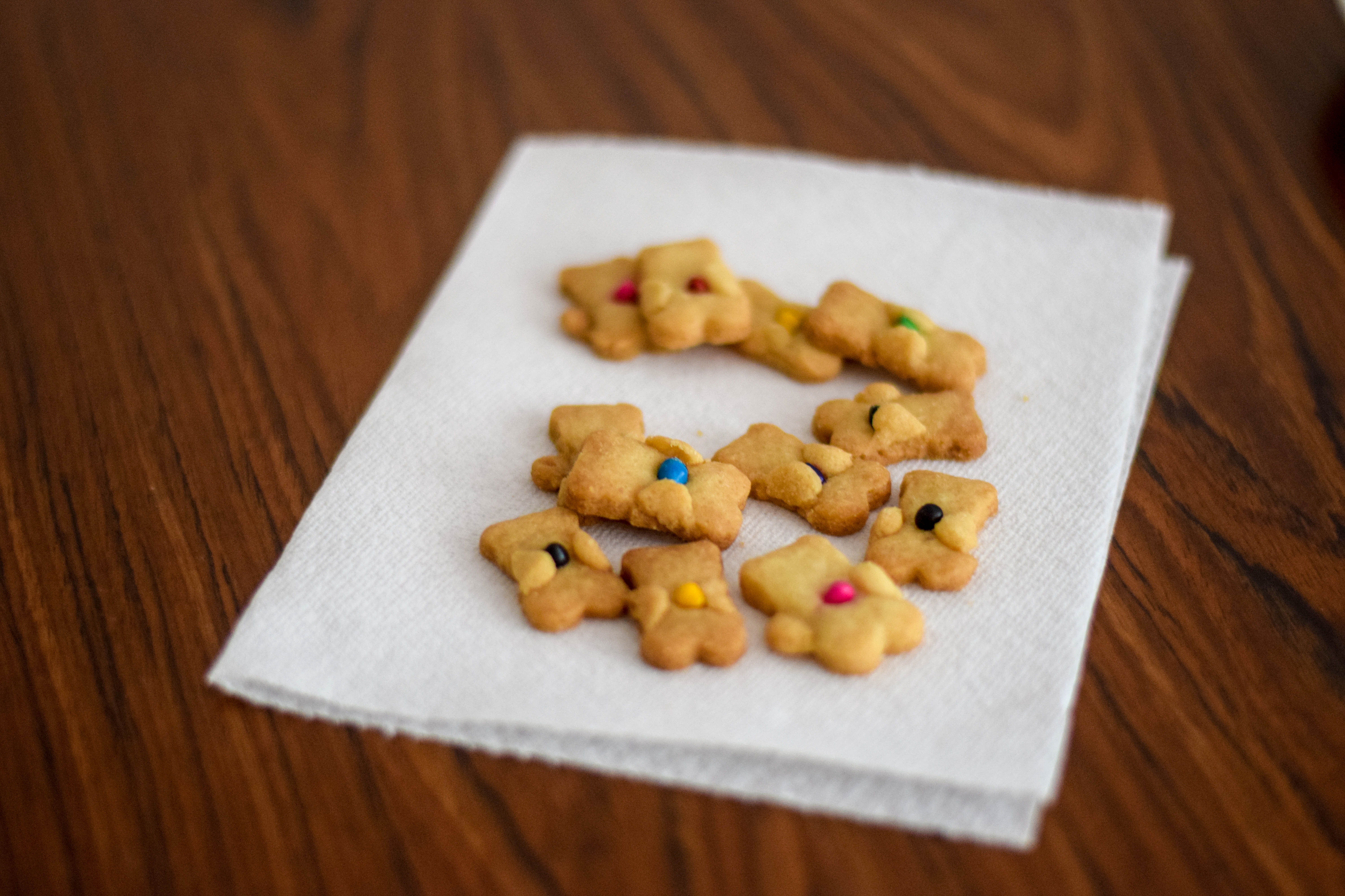 Esto es una de esas recetas que no califican como receta… SÍ porque al final les doy mi receta favorita de galletas de azúcar pero NO porque estas galletas de ositos tienen de especial que abrazan a un dulcecito y se ven muy muy lindos. Se me ocurrio para esta época porque es ideal para hacer con niños, en vez de ositos pueden ser moldes de estrellitas o moldes de muñequitos de jengibre o cualquier cosa con brazos (para que abracen a los dulcecitos…).