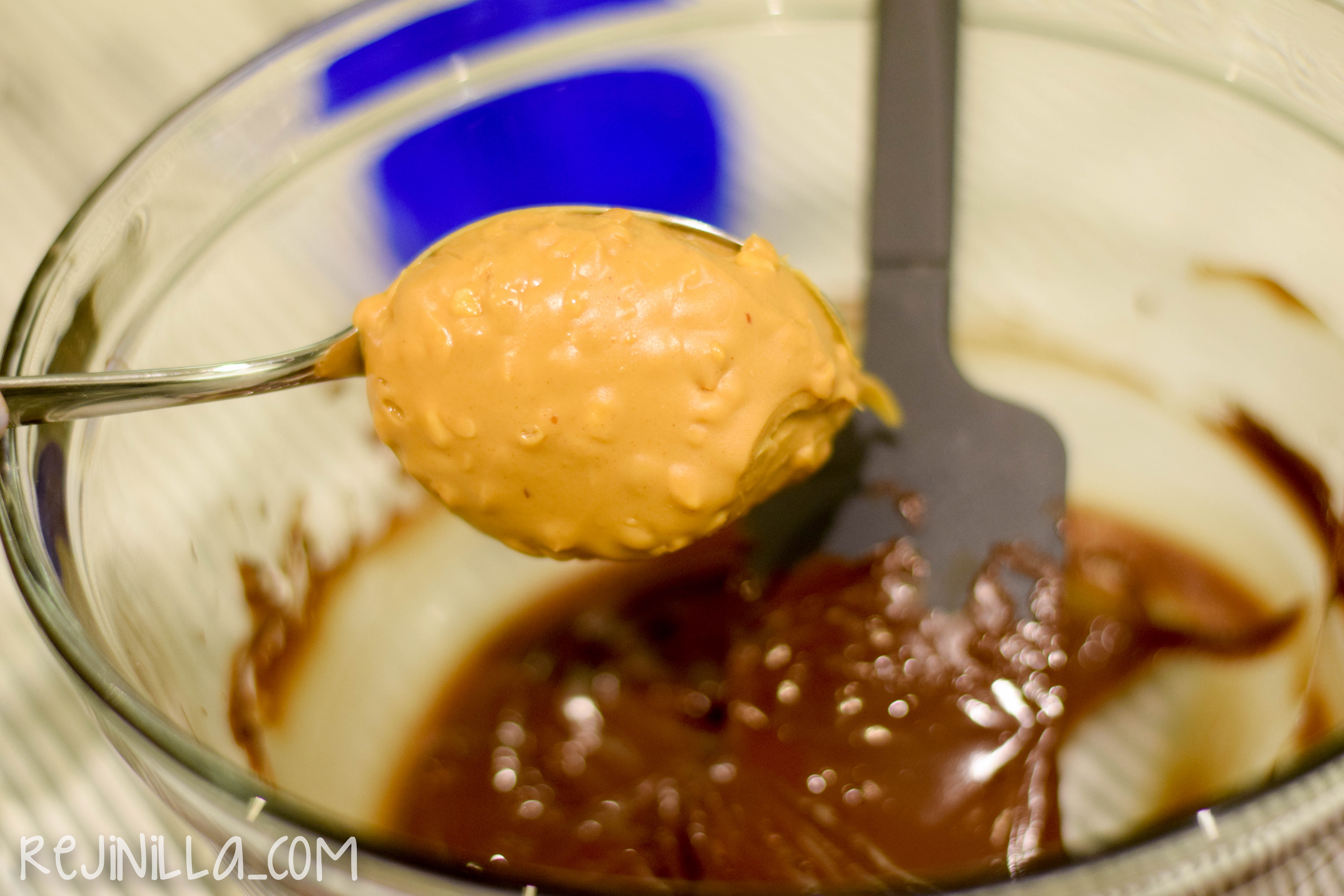 Derrite el chocolate y agrega la crema de cacahuate. Mezcla bien.