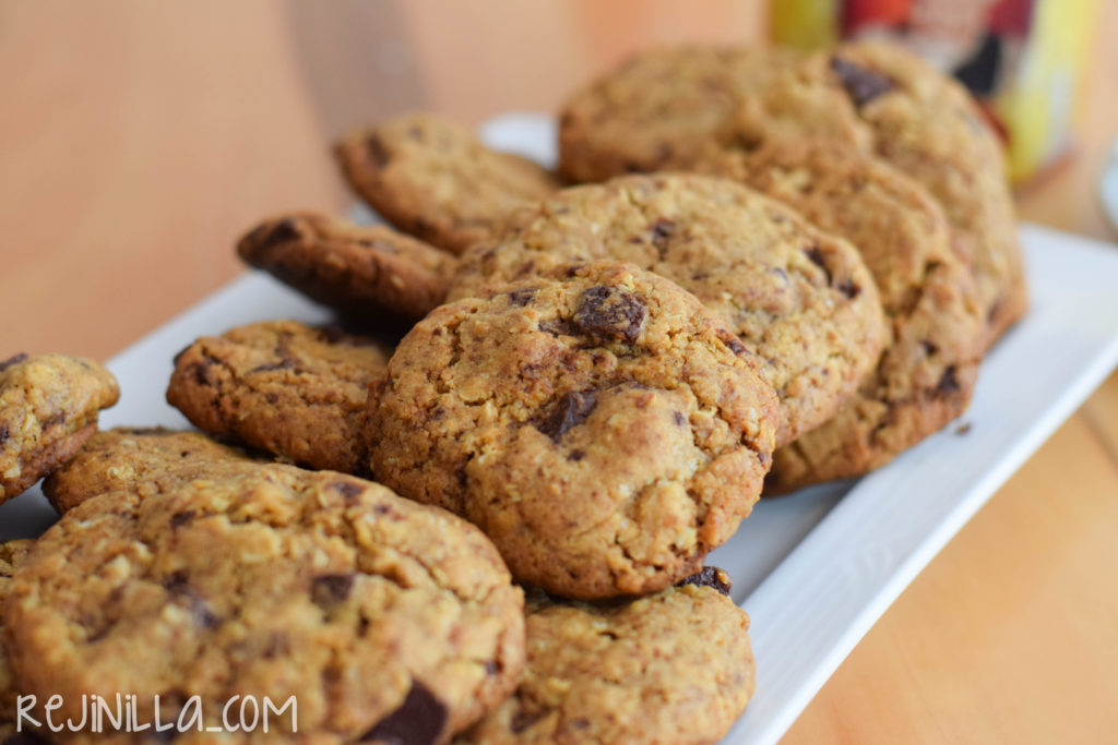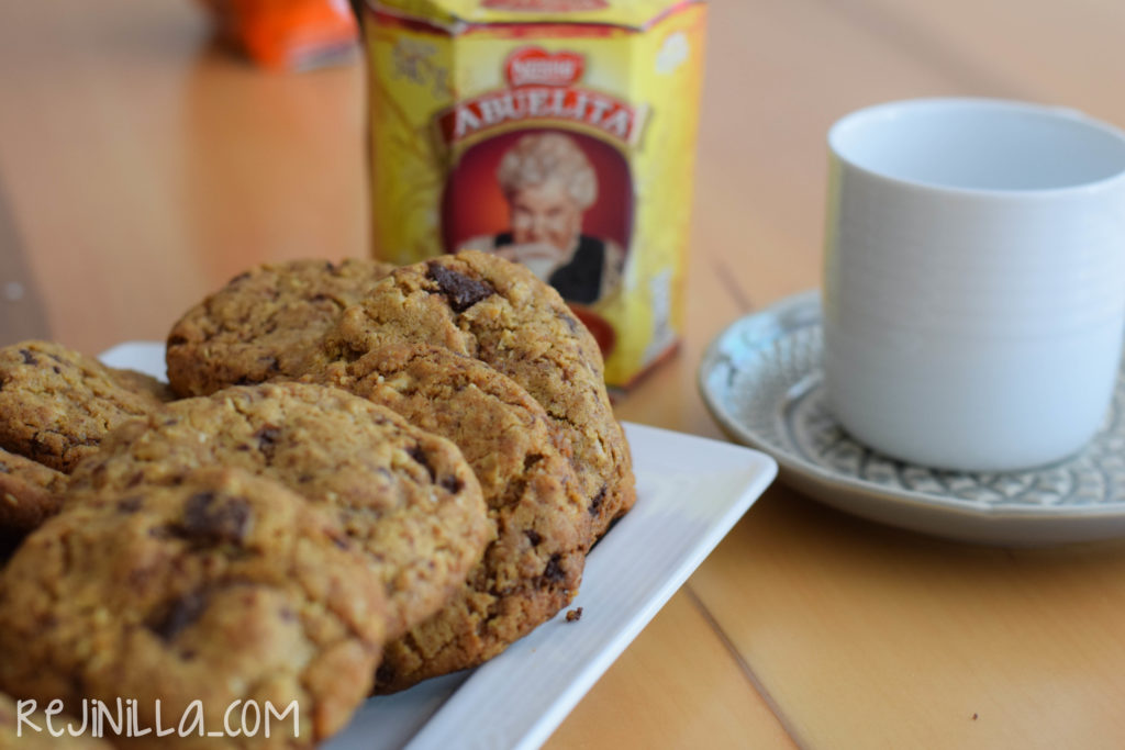 Esta es una de las masas en las que confío ciegamente y esta vez le puse pedazos de chocolate abuelita. El resultado fue delicioso. La galleta tiene avena así que le da cierta textura y chiclosidad y los chunks de chocolate de mesa son una sorpresa que no esperas en la clásica galletita de chispas de chocolate.Obviamente, como ya es costumbre por aquí, es MUY fácil de hacer.Acrema mantequilla y azúcar, si la mantequilla está suave es muy fácil hacerlo a mano.Después de los ingredientes húmedos van los secos y el chocolate en trozos.Acomoda en cucharadas en una charola preparada y hornea hasta que estén doradas en las orillas y un poco suaves al centro. Deja enfriar en rejillas YUM   Acompaña con una buena taza de café- o chocolate!