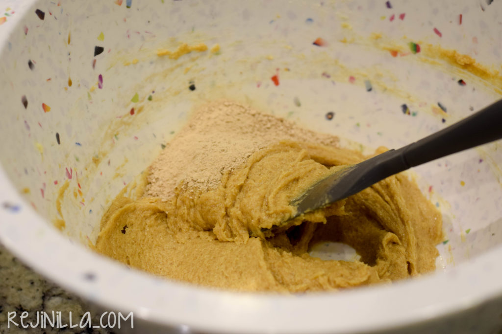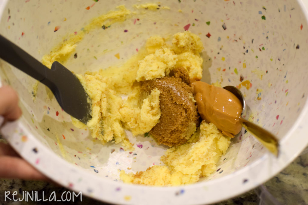Acrema la mantequilla, azúcar y crema de cacahuate. Luego agrega el polvito de levadura de cerveza.