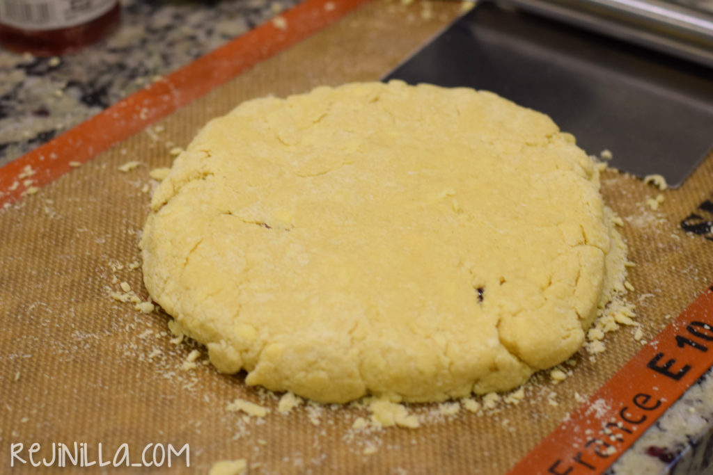 Aplasta y dale forma con las manos, solo ligeramente, no queremos ni amasar de más ni que la mermelada se desparrame.