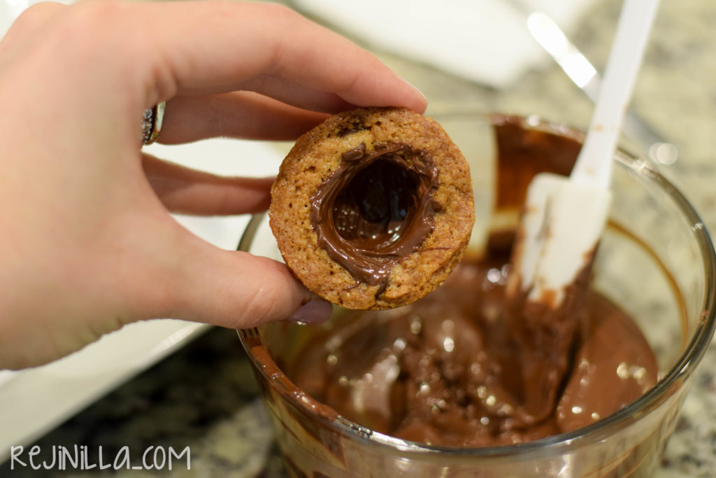 Y rellena con una capa ligera de chocolate derretido. Como para impermiabilizar el interior.