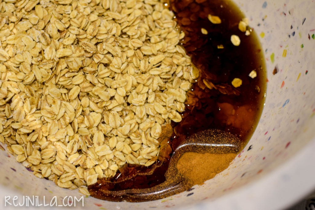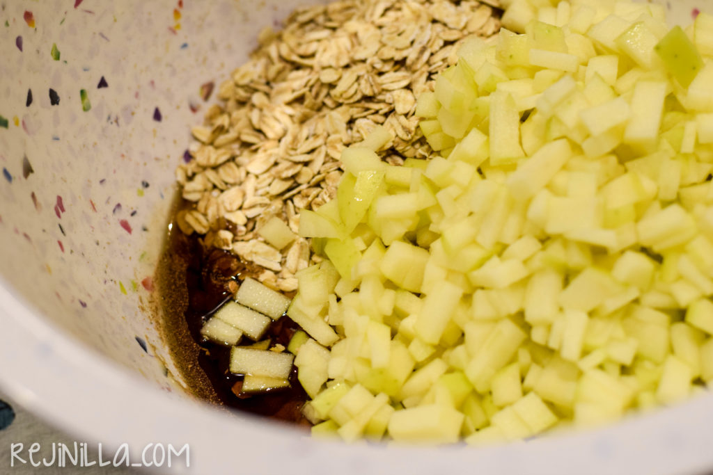 Mezcla la avena con canela, maple y manzana muy picadita, una pizca de sal y chorrito de vainilla.