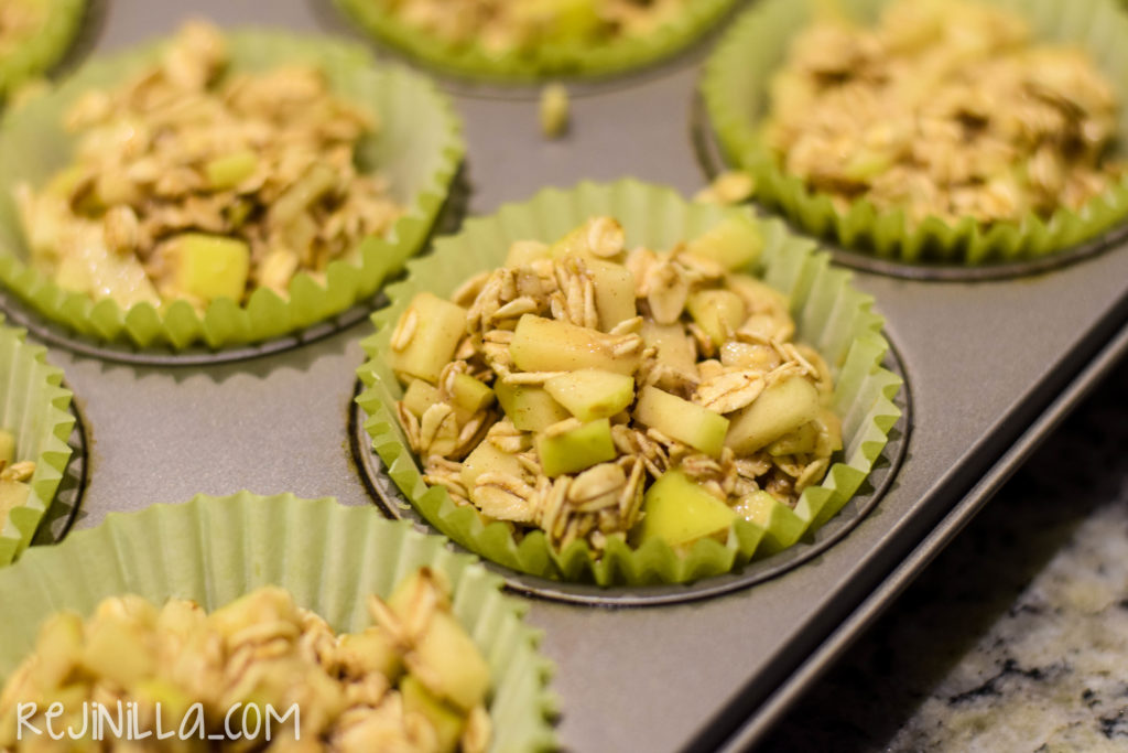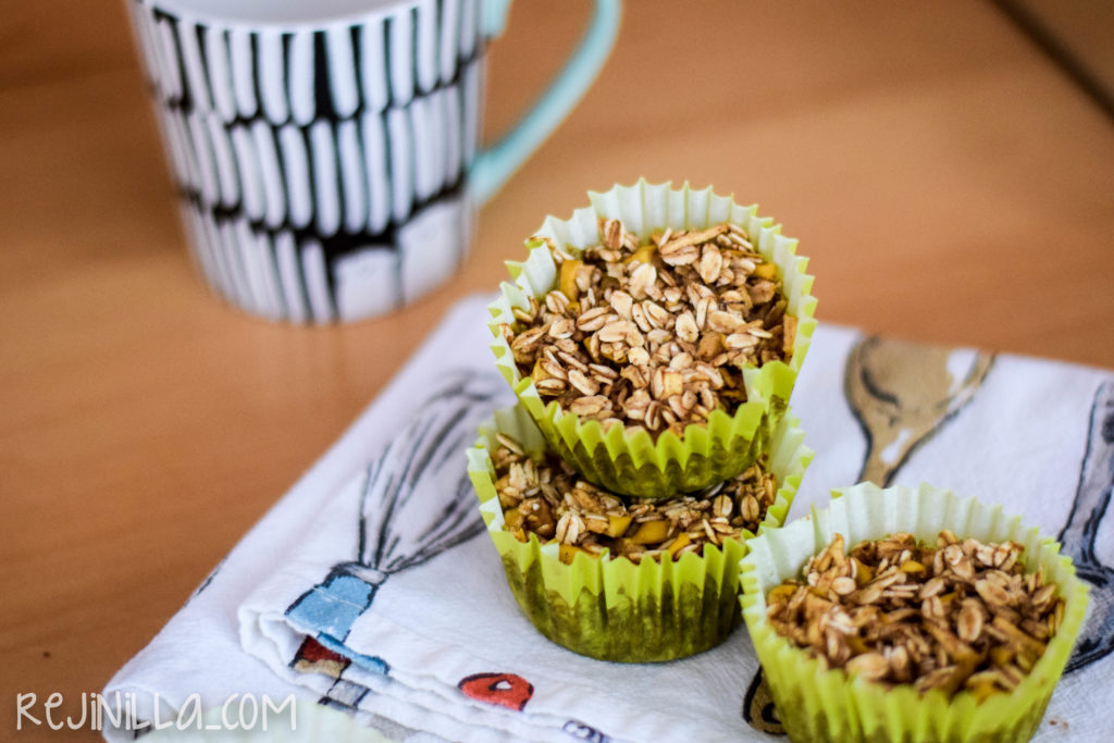 En el regreso a clases, de los retos más fuertes está el desayunar bien (también sin escuela, sigue siendo un reto para grandes y chicos). Esta es una receta para hacer avena de manzana para llevar, hecha en papelitos de cupcakes, es avena horneada lista para ser devorada a cualquier hora. Es libre de grasa, lácteos y gluten (asegúrate de comprar avena GF). Tiene todo lo bueno de la avena y manzana para empezar el día, ligeramente endulzado con miel de maple.