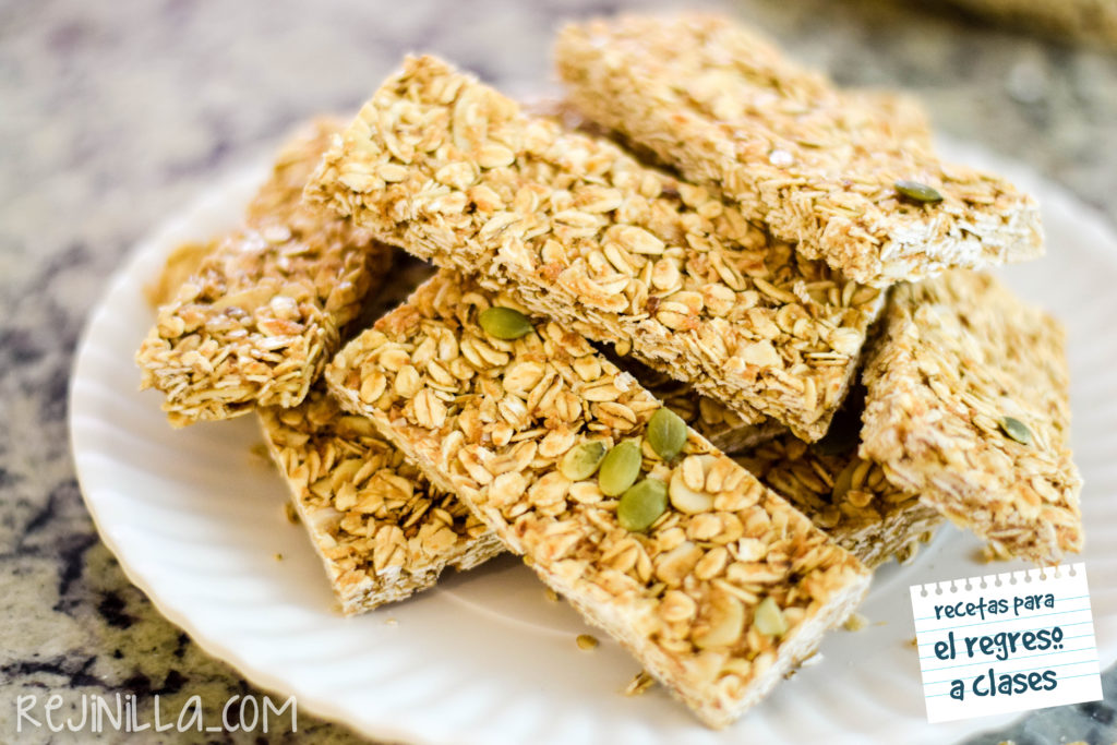 Aplasta la mezcla en un molde cubierto de papel encerado, compacta bien con un rodillo o un vaso. Deja enfriar antes de cortar.  Esta es la primera receta de la serie para el regreso a clases, 16 días de recetas ideales para el lunch, snacks, postres y desayunos para niños (y para grandes). Para recibirlos directo en tu correo, inscríbete aquí: