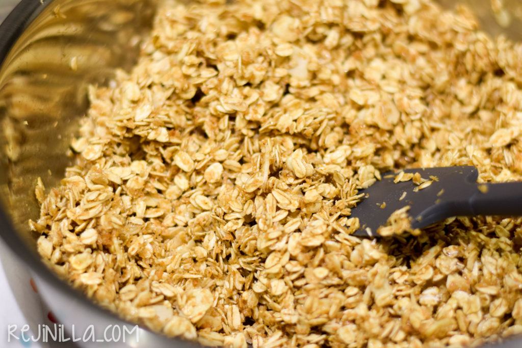 En un bowl, agrega el caramelo a la mezcla de avena.