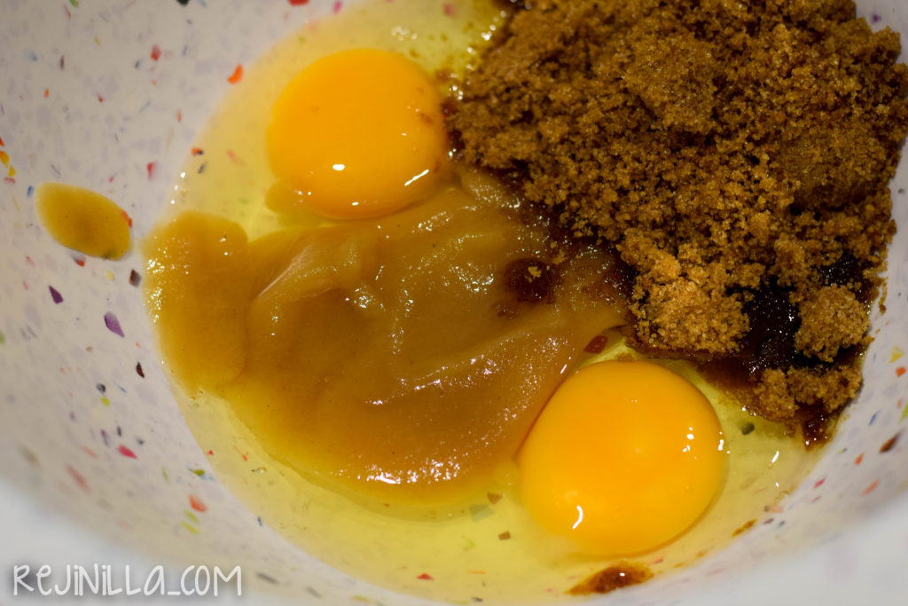 Otra vez, super fáciles de hacer!! Por una parte, mezcla los ingredientes húmedos, con un poco de puré de manzana en vez de mantequilla o aceite.