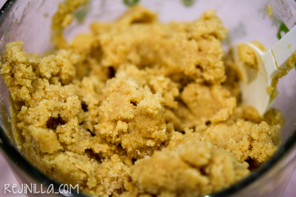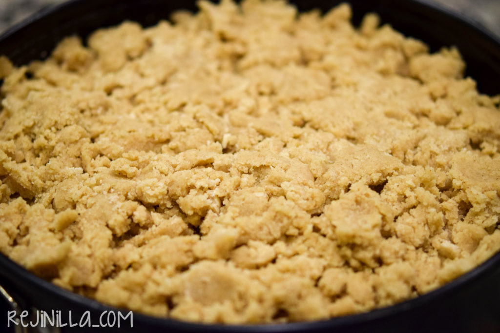 Prepara la cubierta crujiente mezclando la mantequilla con el azúcar, harina y demás ingredientes. Reserva.