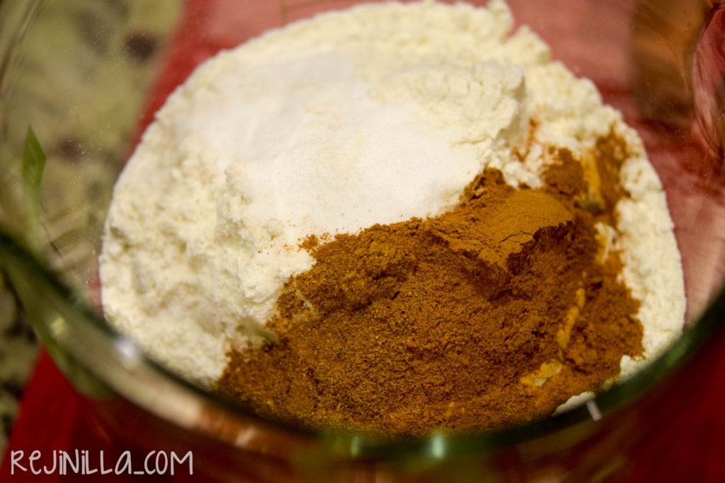 Y en un bowl grande mezcla la calabaza, huevo, azúcar y leche.