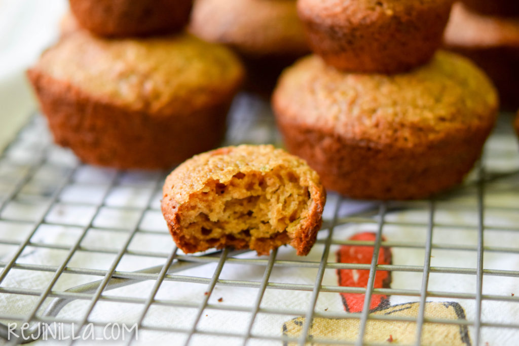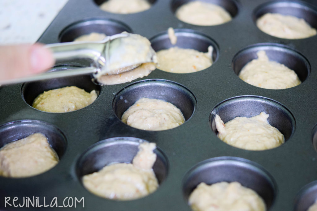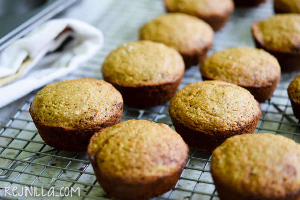 Vacía la mezcla en moldes de cupcakes o mini cupcakes. Salen 12 grandes o 24 minis. Yo hice doble masa porque estos muffins son tan buenos y healthy-ish que sirven para los niños, un snack, complementar desayunos, etc. Los congelo bien sellados en un topper o bolsa de zipper y los voy sacando como los voy necesitando.