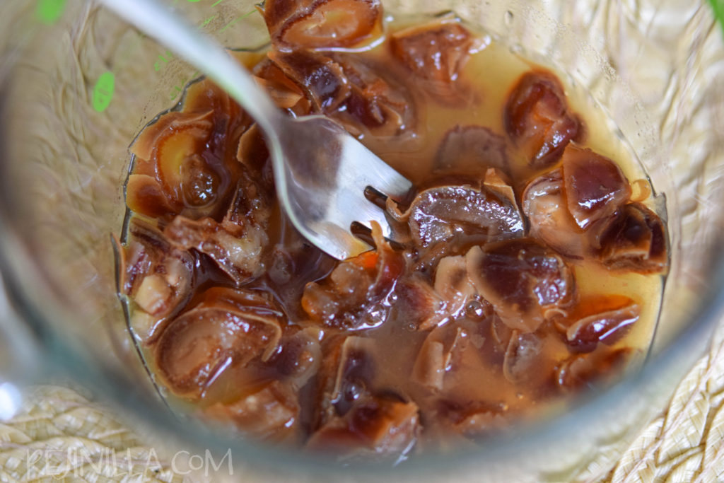 Pon a remojar los dátiles en agua caliente, por lo menos 30 minutos. Puedes hacerlo directo en la licuadora…