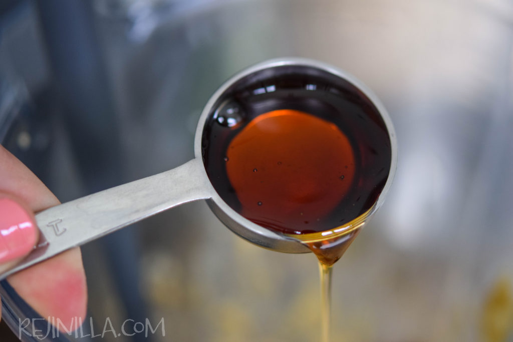 Agrega la miel de maple o tu endulzante de preferencia, o nada si así lo quieres… Yo por que por ahi les había dicho… si he de tener un ingrediente puro (puro!) en la cocina es miel de maple, me encanta y es de lo más versátil… (por ejemplo en estos Kale Chips, o en palomitas)