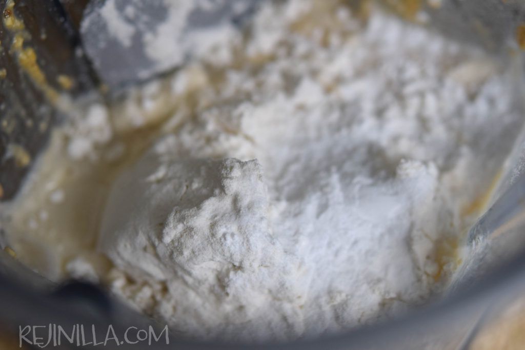 Ahora van los demás ingredientes secos- polvos de hornear, sal, harina. Mezcla solo para integrar.